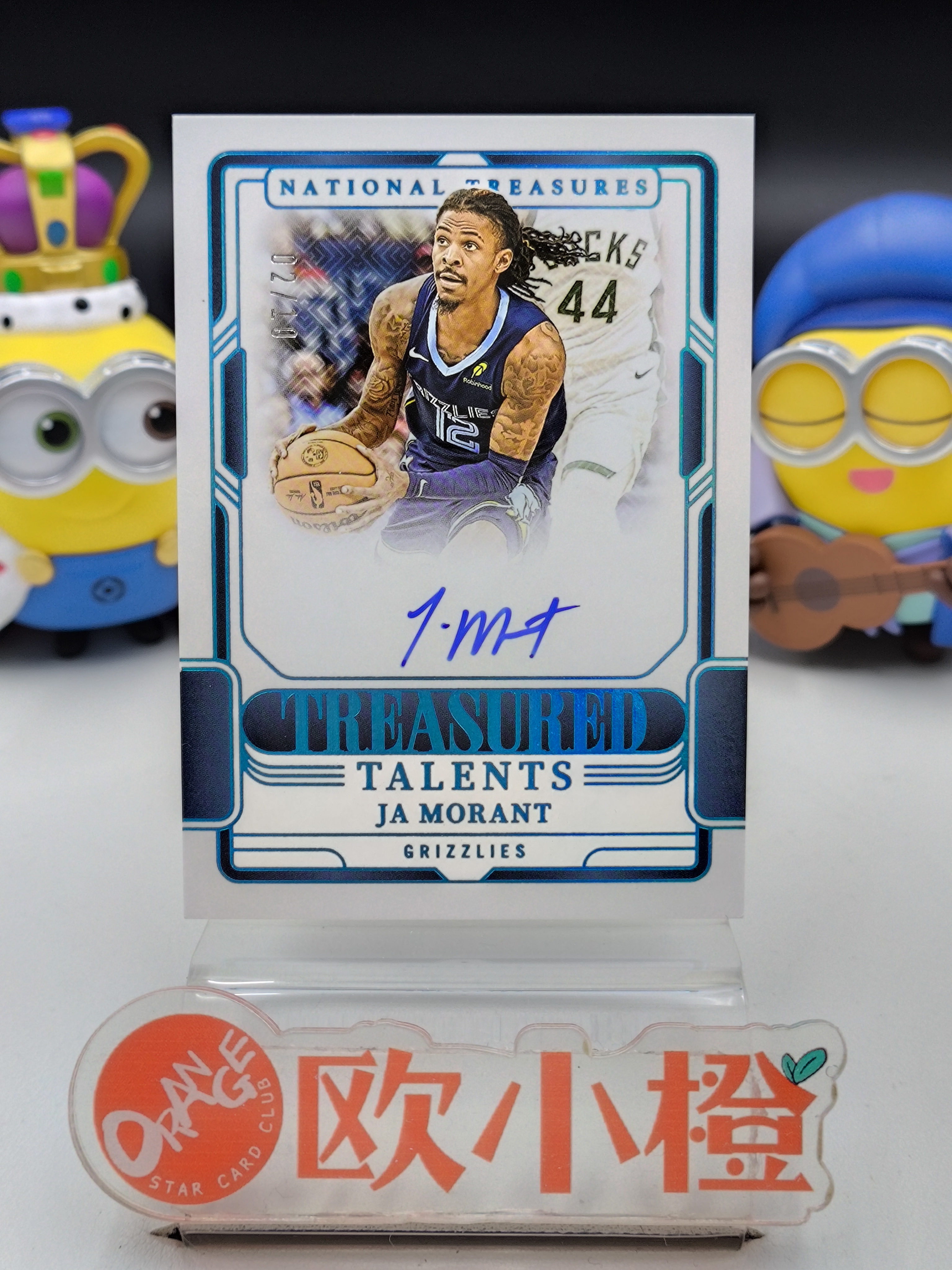 2024-25 【欧小橙急速拍】 National Treasures Ja Morant 国宝 灰熊 莫兰特 湖水蓝 签字 卡签 Talents 天才肖像签 02/10编 加法同背 航-XHX