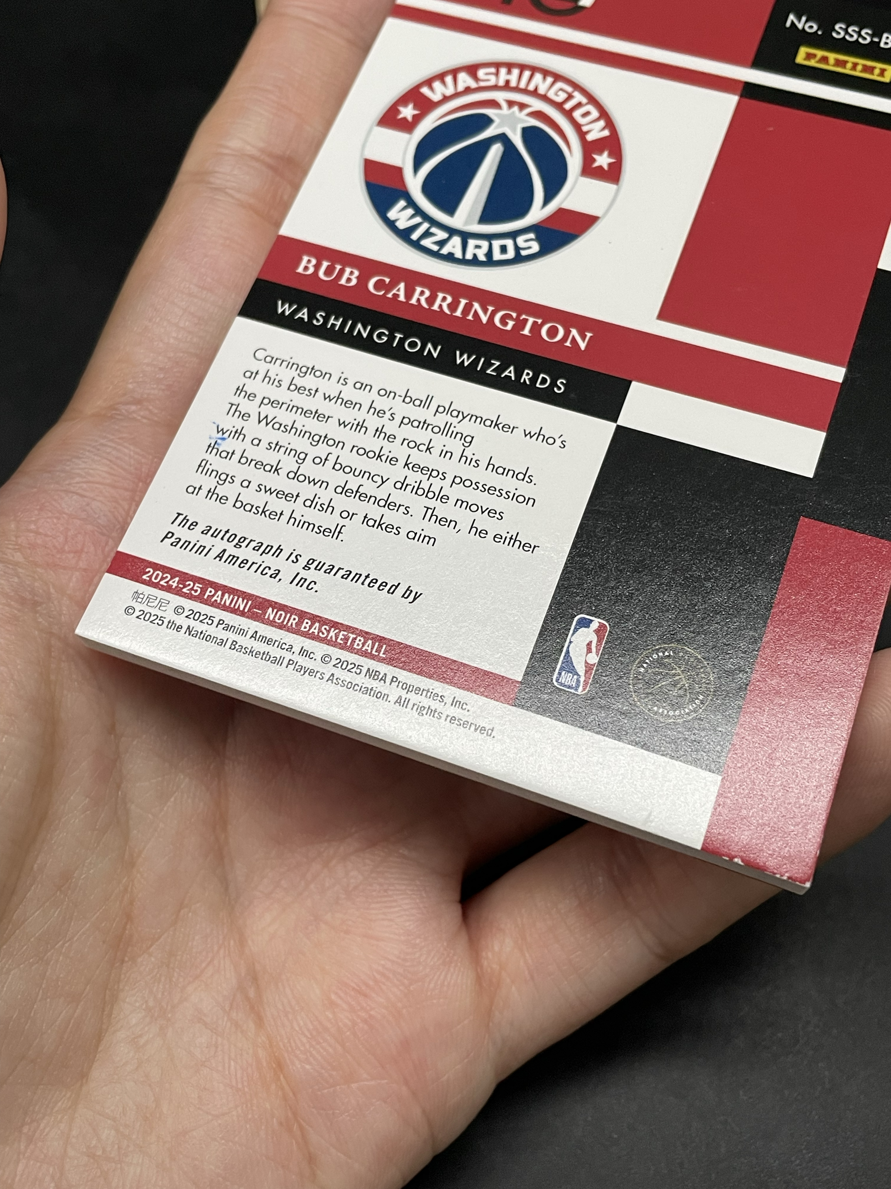 2024-25 Panini Noir BUB Carrington RC 【白鸟代卖 寄付特快】诺尔 鞋灯 卡灵顿 卡林顿 新秀 /99编 镜面 聚光灯 签字 卡签 微瑕如图 铁索道