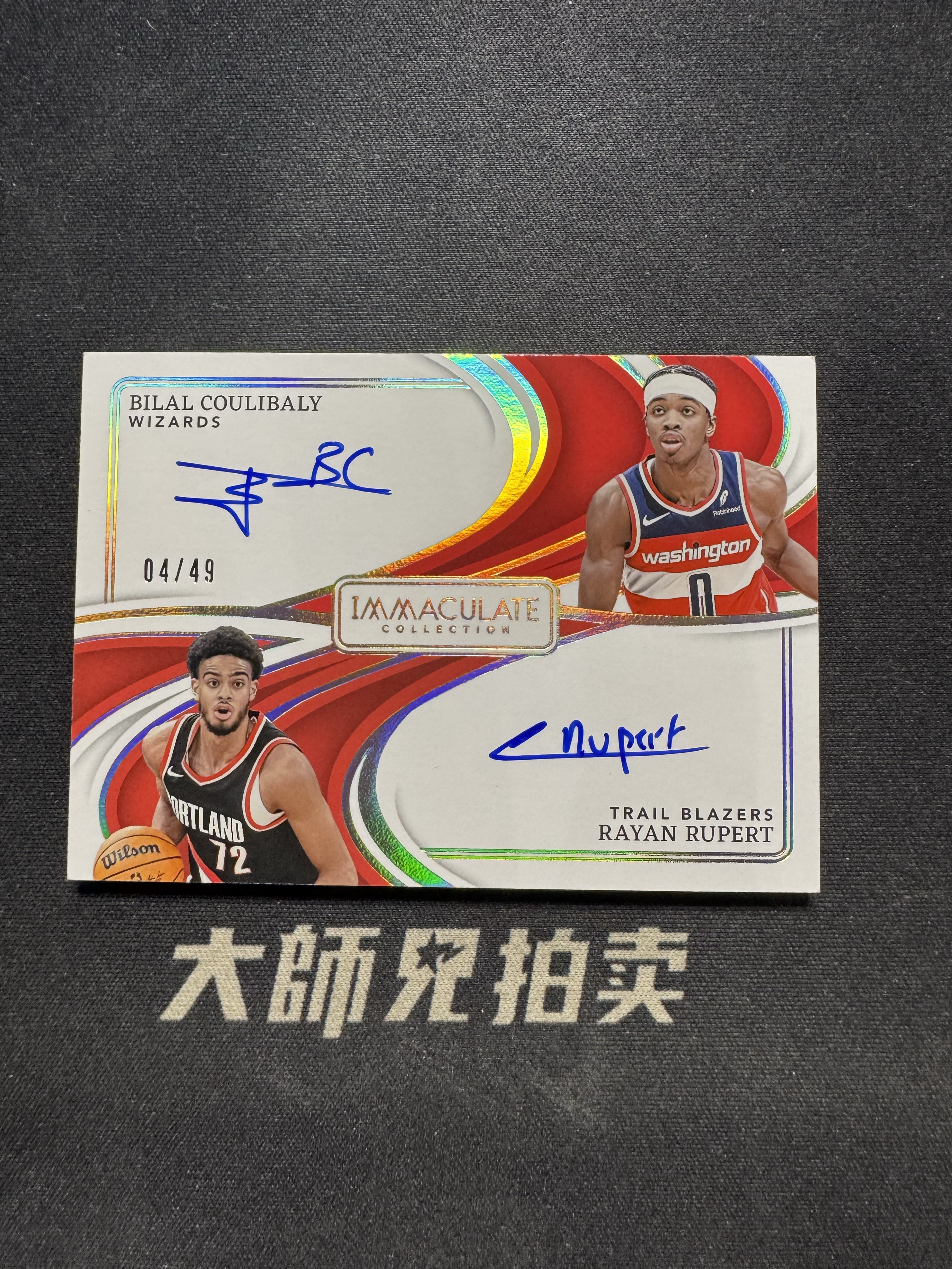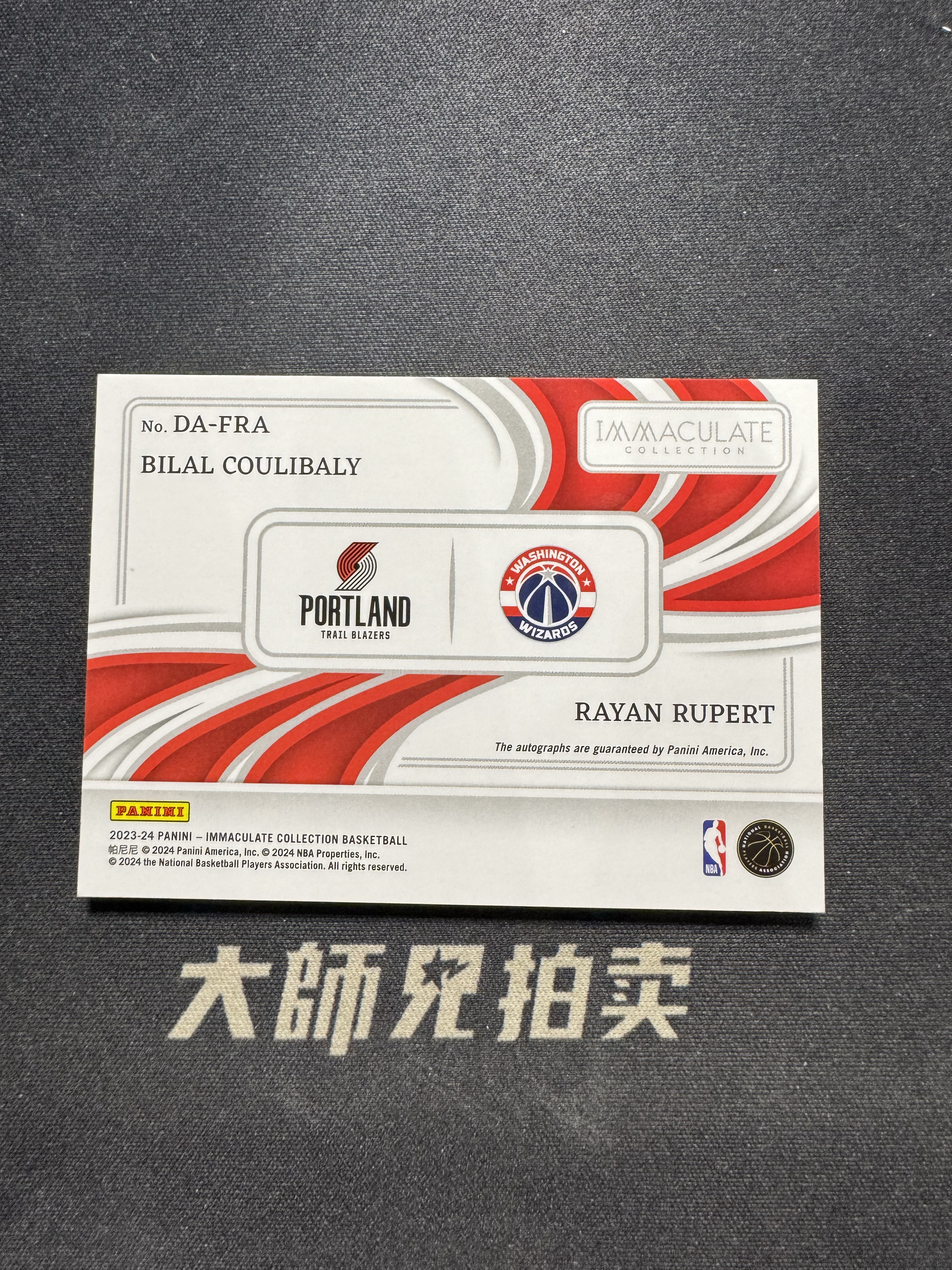 【大师兄拍卖】2023-24 panini immaculate BILAL COULIBALY RC 奇才 库利巴利 开拓者 拉扬 吕佩尔 新秀 /49编 双人签字 双签 卡签 瑕疵看图-jinx-