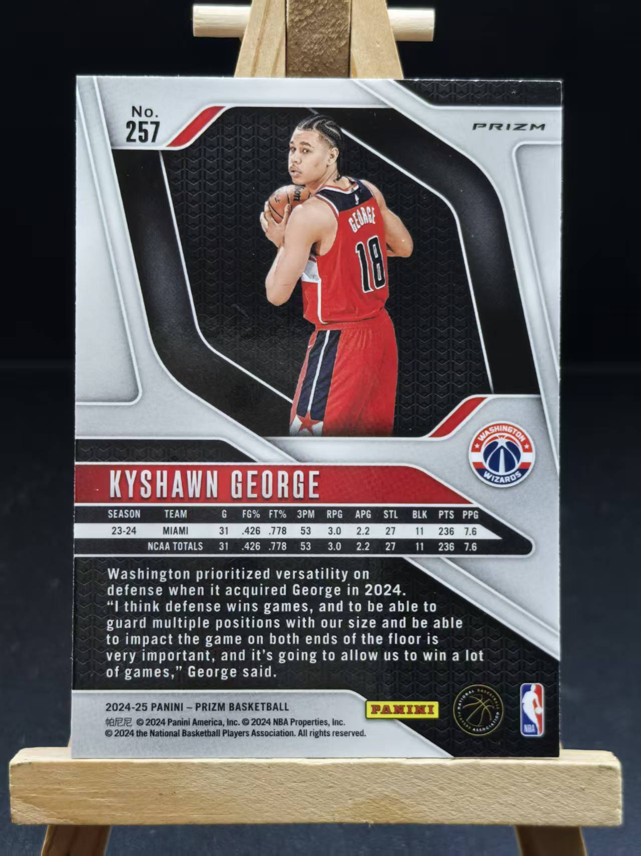 2024-25 Panini Prizm Kyshawn George RC 舟 PZ 奇才 新秀 凯肖恩 乔治 正银折 折射 潜力十足 微白边角092235(yzz
