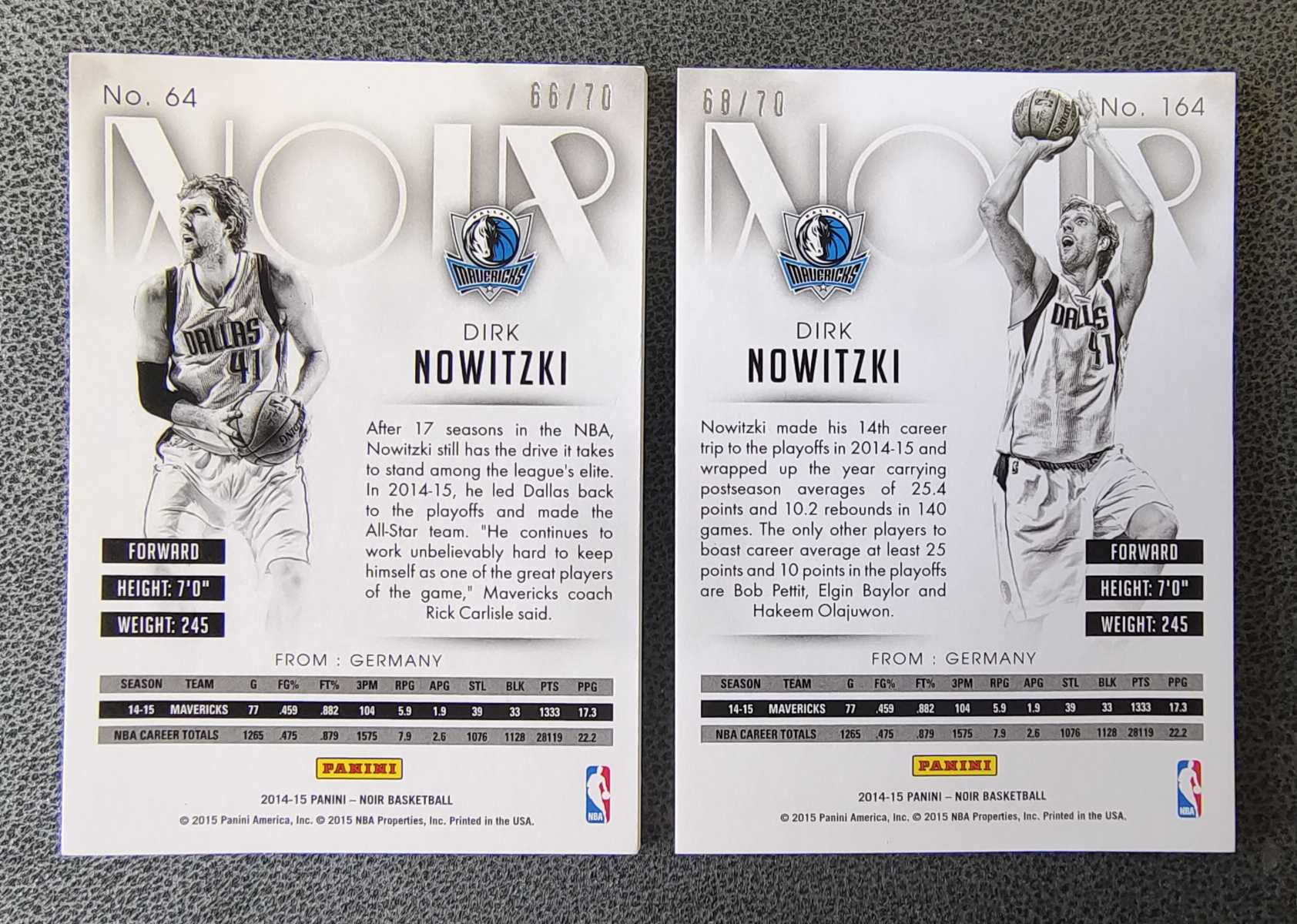 2014-15 帕尼尼 Panini 达拉斯 小牛队 独行侠 maverick 德克 诺维斯基 德国战车 司机 NOIR 普卡一对 镜面漂亮 自由收藏 品像佳 编号66/70和68/70