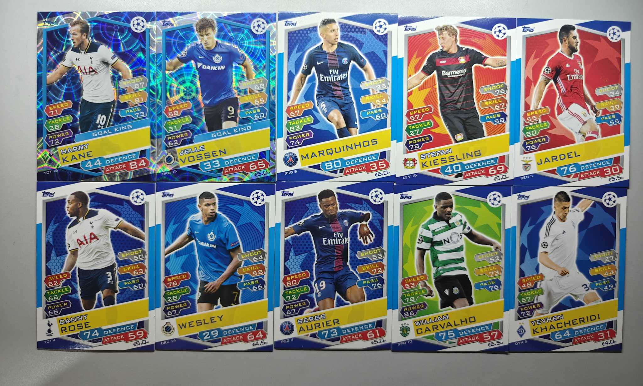 2016-17 Topps Match Attax Harry Kane 欧冠 游戏版 热刺 哈里凯恩 英格兰 圈圈折 特卡 马尔基尼奥斯 大巴黎 等 葡萄牙体育 本菲卡 勒沃库森 默认微瑕 介意勿拍