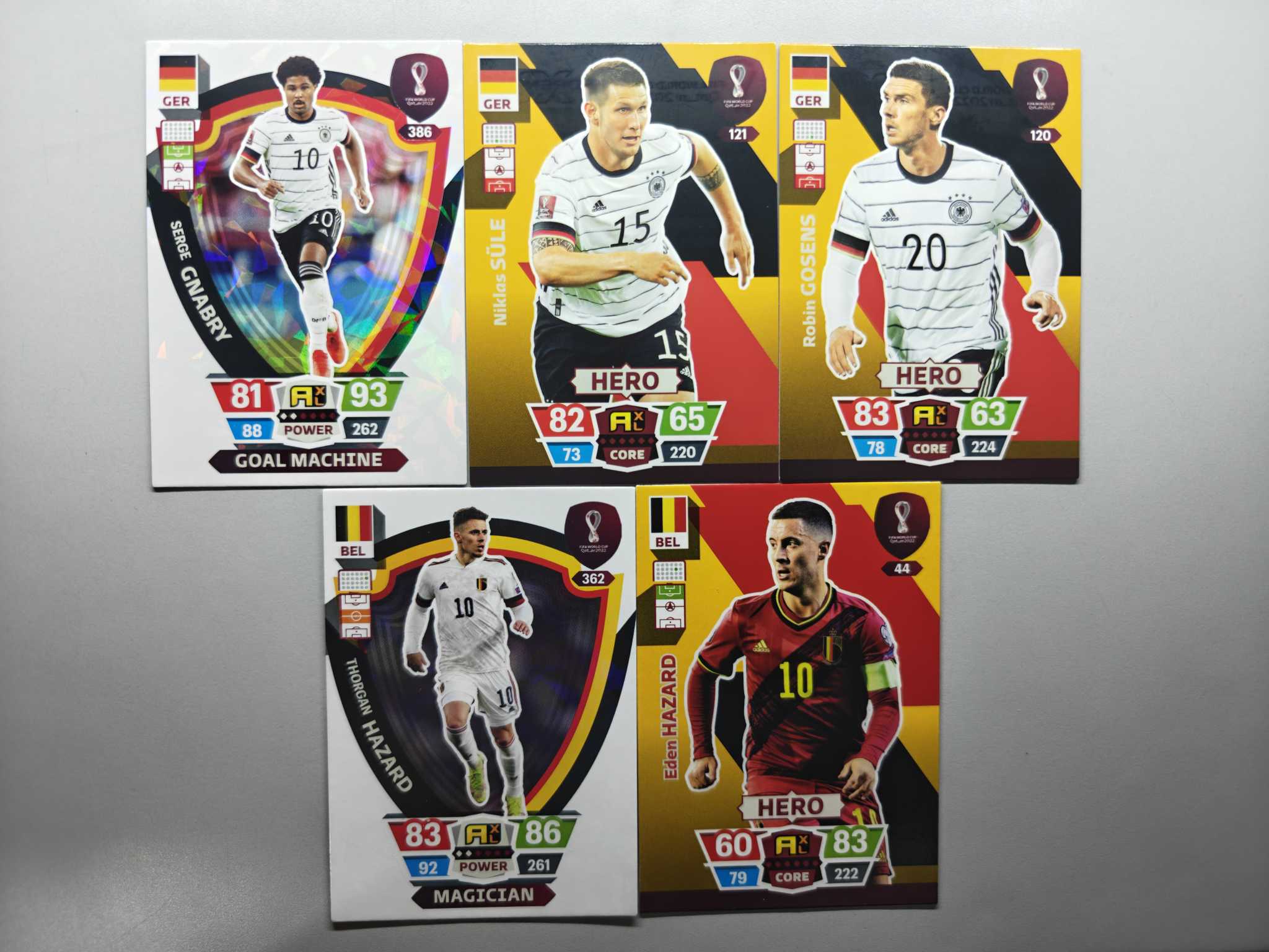 2022 Panini Adrenalyn XL 世界杯 游戏版 格纳布里 阿扎尔 等 白碎冰折 英雄特卡 德国 比利时 拜仁慕尼黑 皇家马德里 默认微瑕 介意勿拍