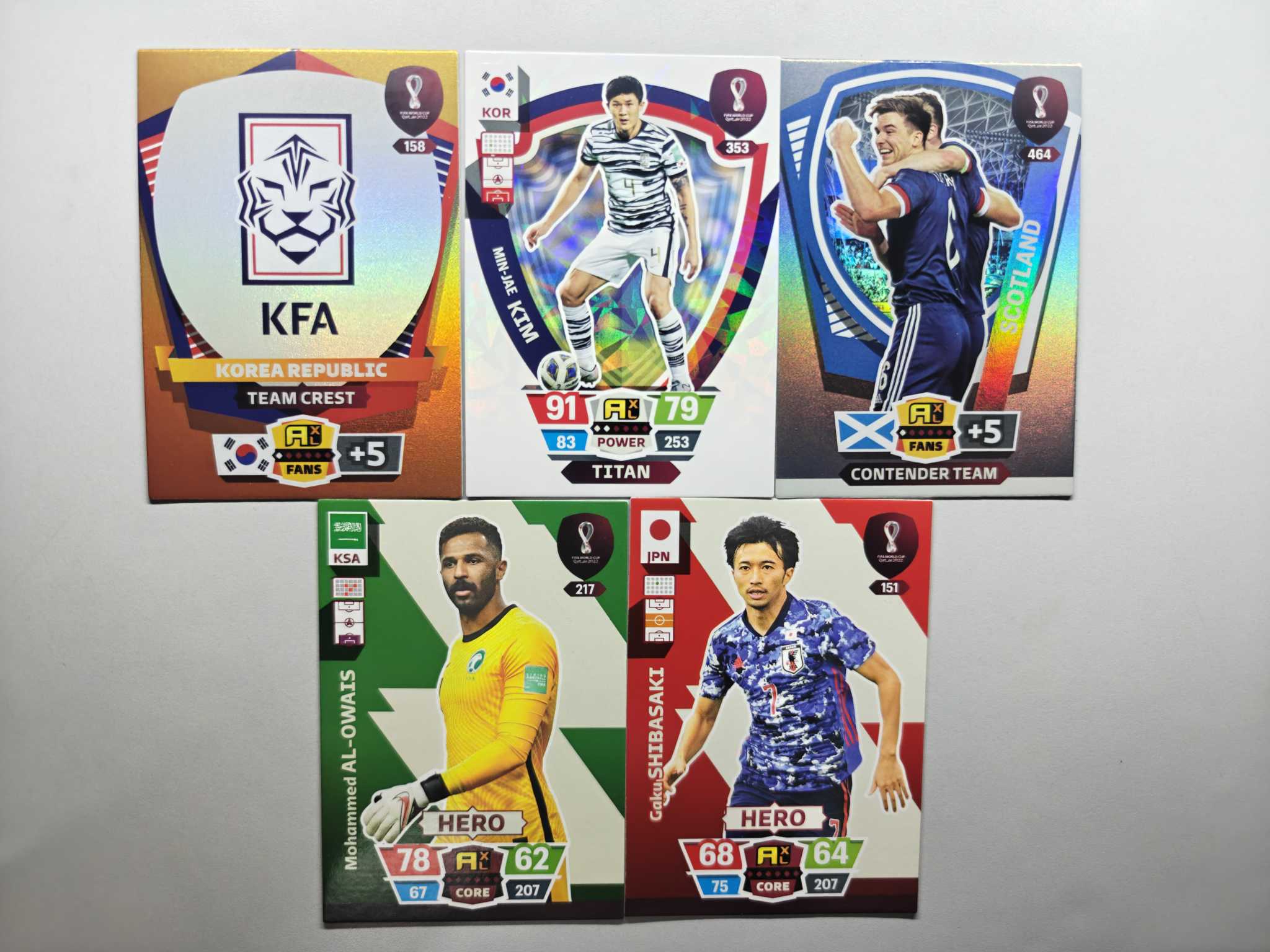 2022 Panini Adrenalyn XL 世界杯 游戏版 韩国 队徽 金折 金玟哉 金珉载 银折 苏格兰 双人特卡 日本 7号 默认微瑕 介意勿拍