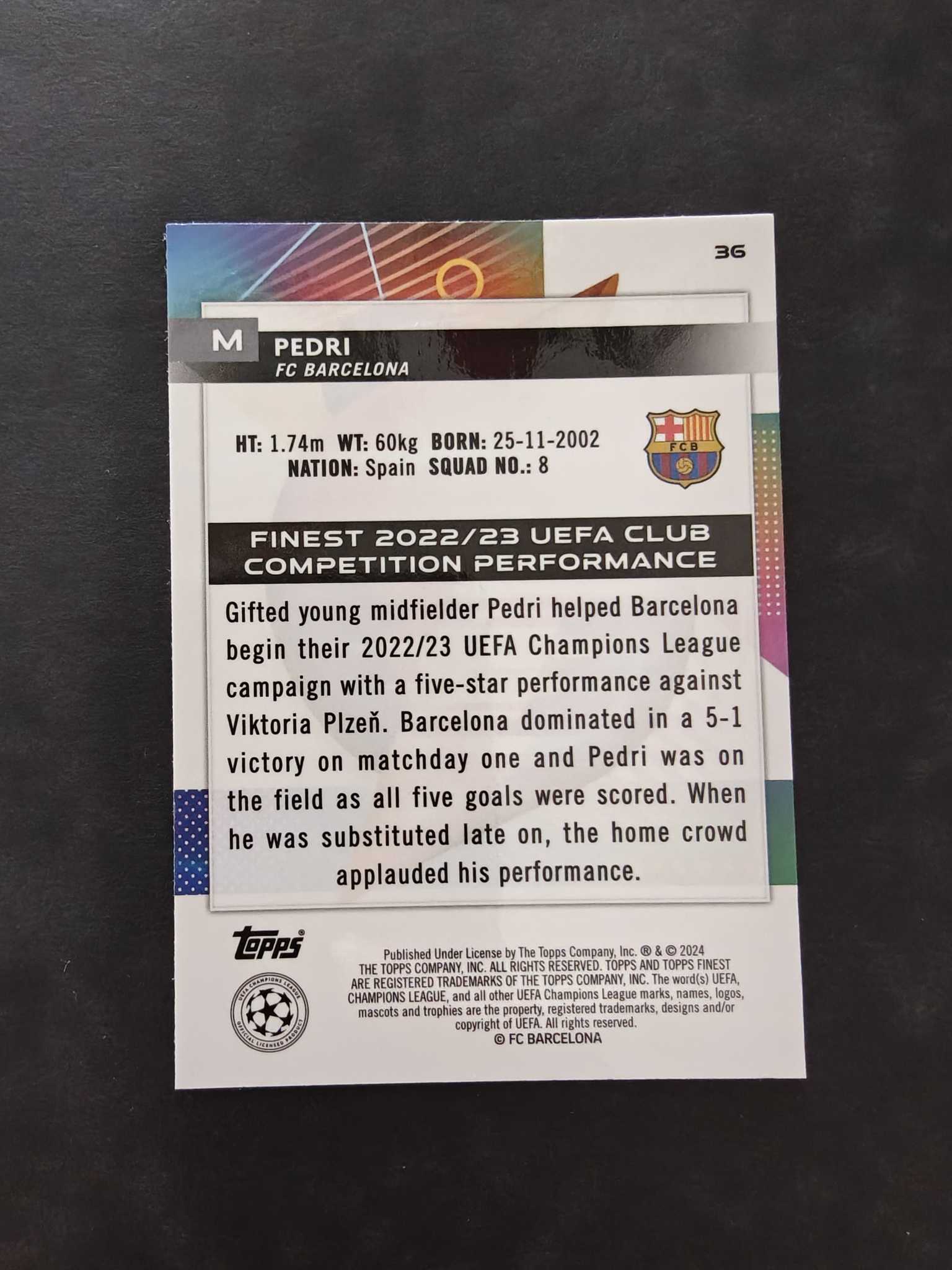 2024 Topps Finest Pedri 佩德里 欧冠 欧战 UEFA 巴萨 巴塞罗那 西班牙 中场 佩刀 93/99编 绿折 折射 默认微瑕 介意勿拍