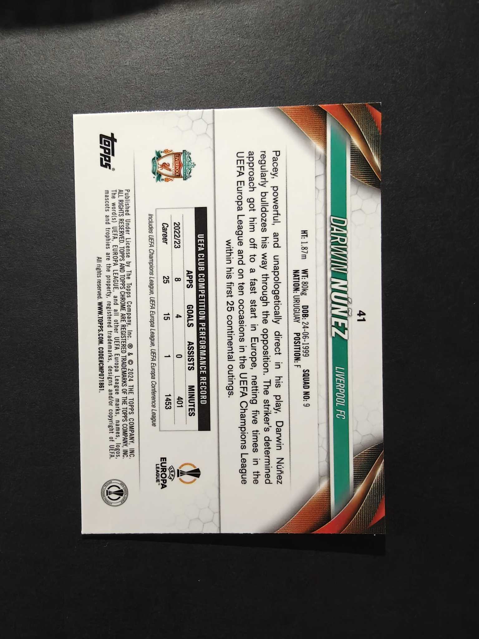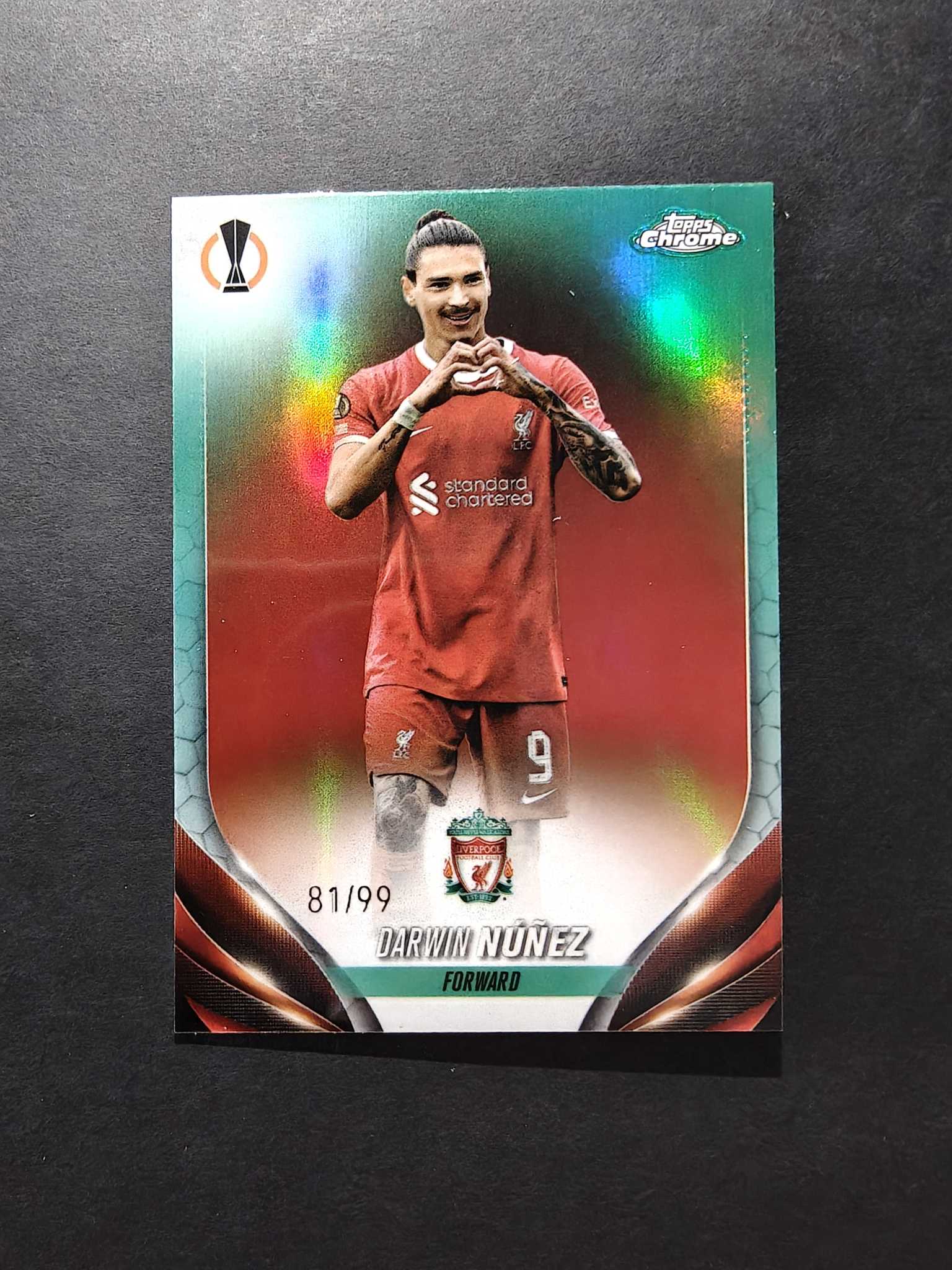 2023-24 Topps Chrome Darwin Nunez 努涅斯 99编彩拼 欧战TC 达尔文 努涅斯 /99编 彩拼折 红配红 英超 利物浦 乌拉圭 神锋 默认微瑕 介意勿拍