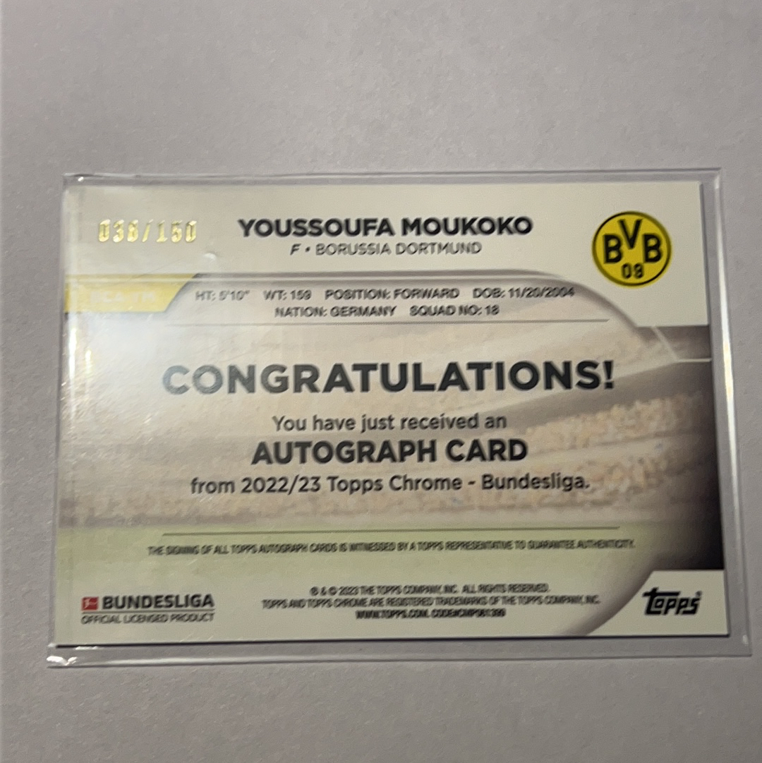 2023-24 Topps Chrome Youssoufa Moukoko 穆科科 chrom签字 38/150编 多特蒙德金童 德国国脚 德国杯冠军成员 多特蒙德 尼斯 未来可期