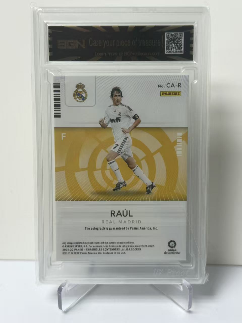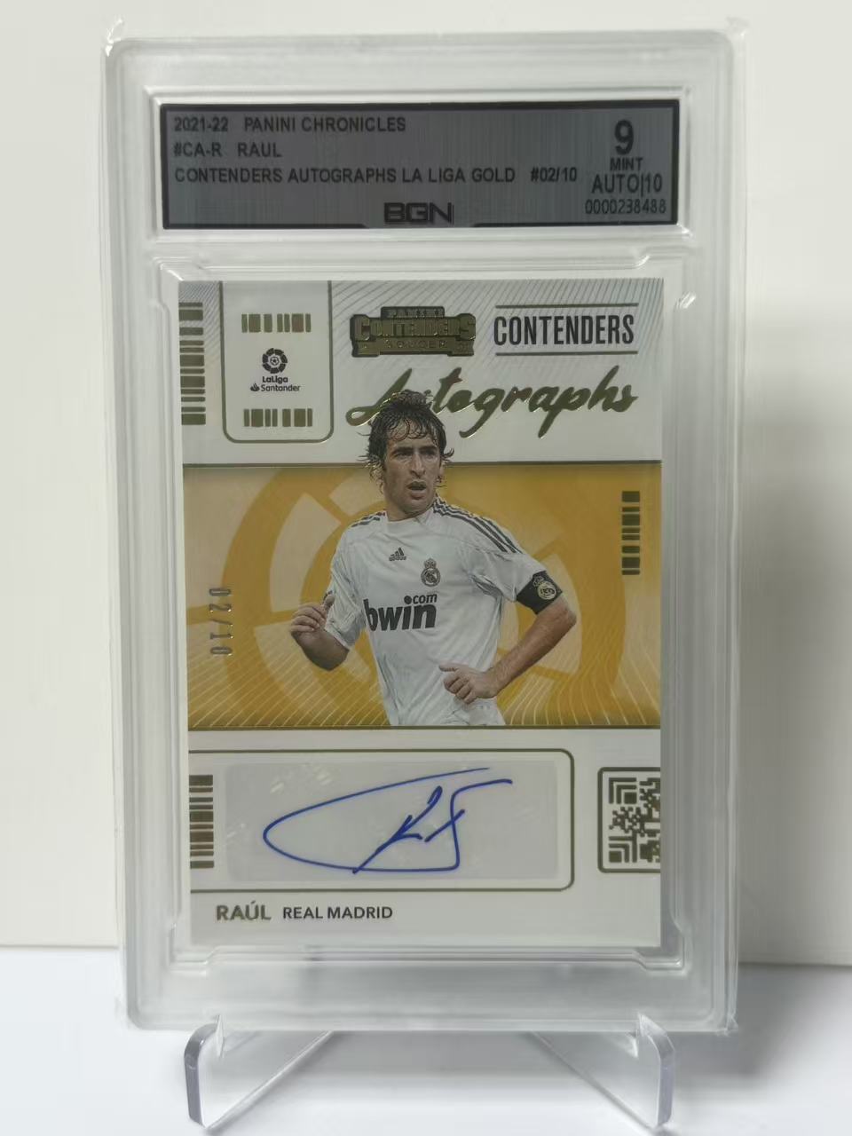 2021-22 Panini Chronicles Raul 编年史 球票 皇马 皇家马德里 指环王 劳尔 2/10编 超低编 金平行 签字 签名 西班牙 BGN评级9/10分 卡品如图 9527