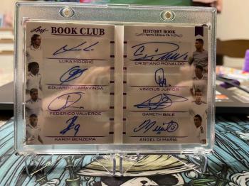超级稀有的LEAF小书,欧冠霸主皇家马德里多达8名球员的亲签卡片,包括克里斯蒂亚诺.罗纳尔多(C罗),维尼修斯,贝尔,迪玛利亚,莫德里奇(魔笛),卡马文加,巴尔韦德,本泽马,金球先生多达3位。品相完好,带砖发货。