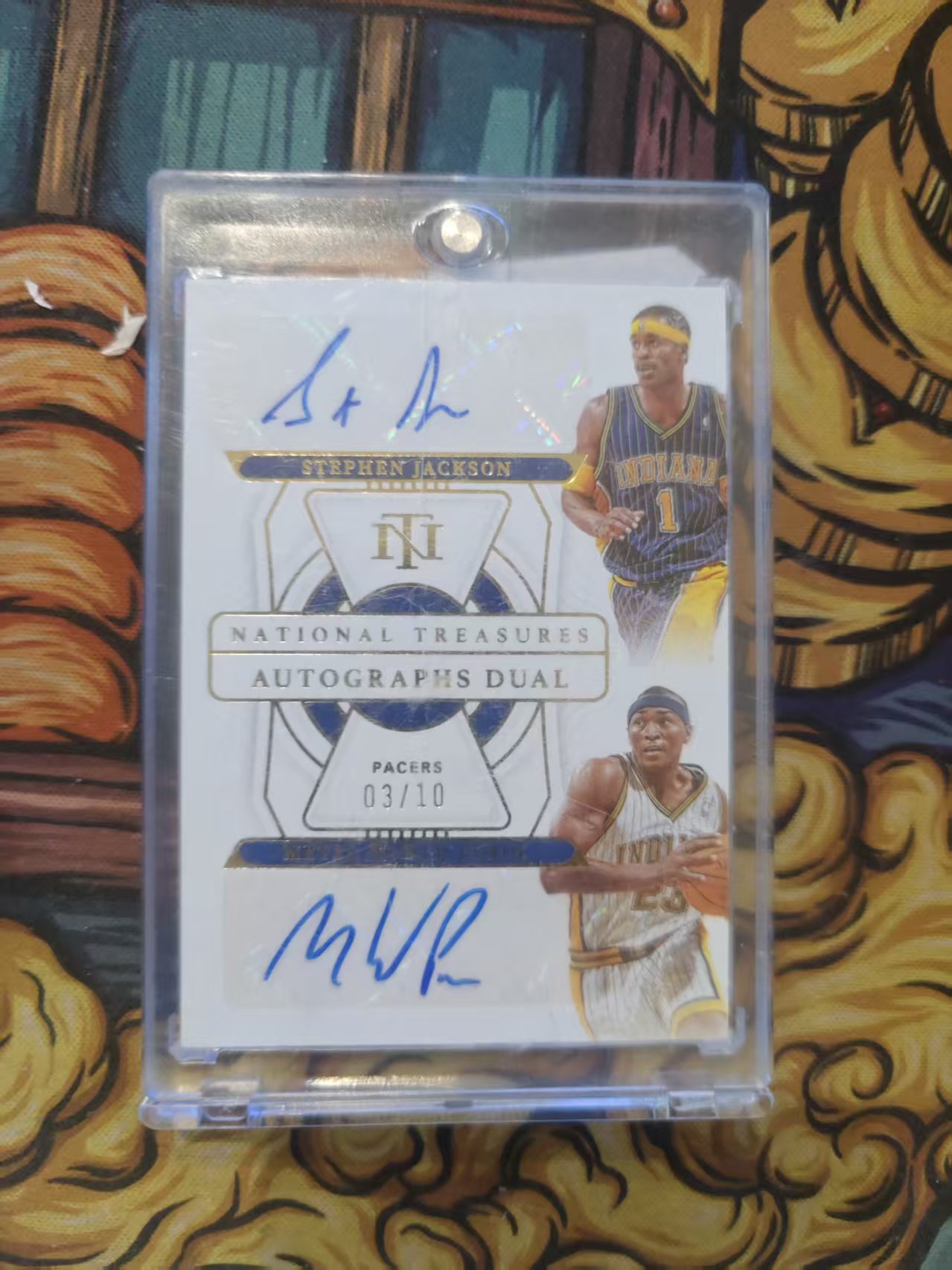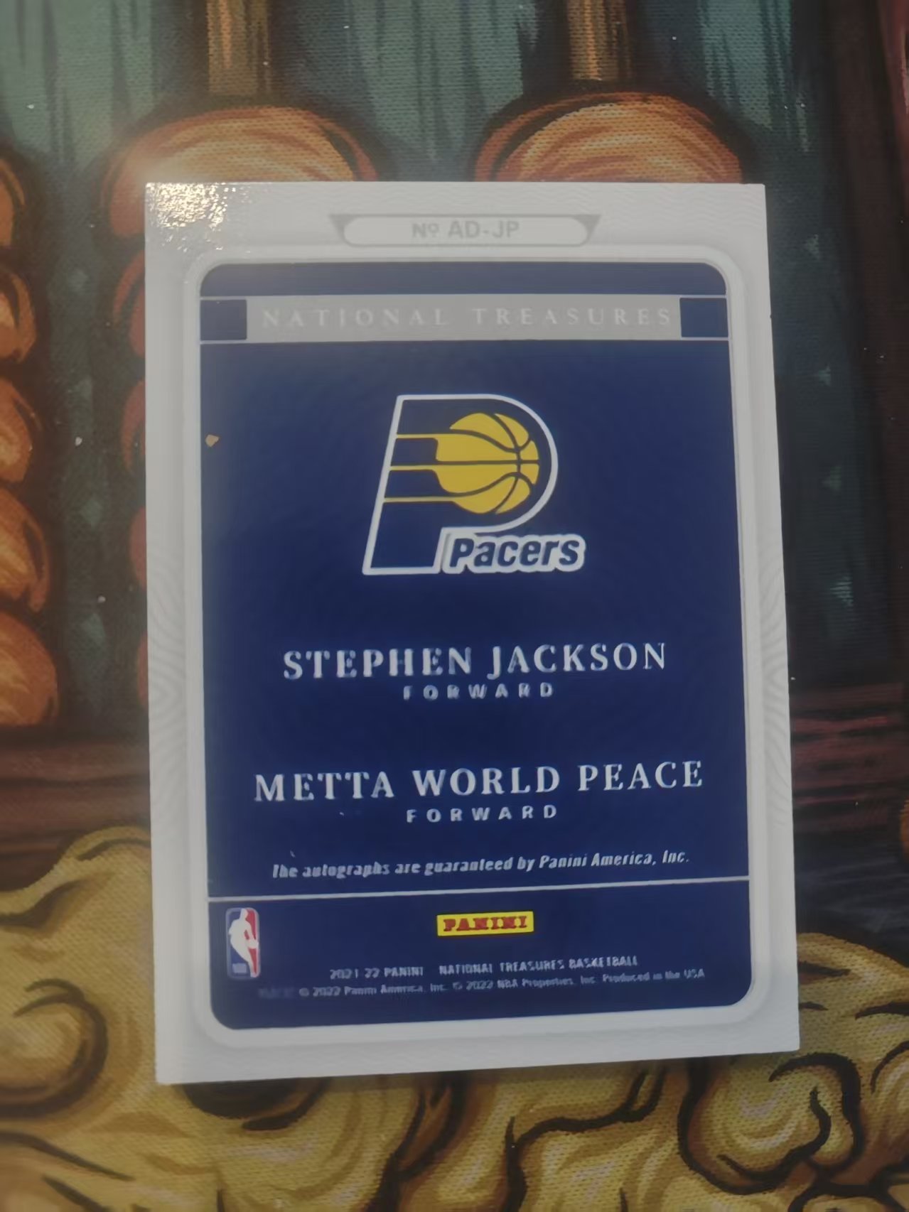 2021-22 Panini National Treasures 国宝 步行者 斯蒂芬 杰克逊 慈世平 阿泰斯特 双人签字 双签 /10编 金平行 收藏必备