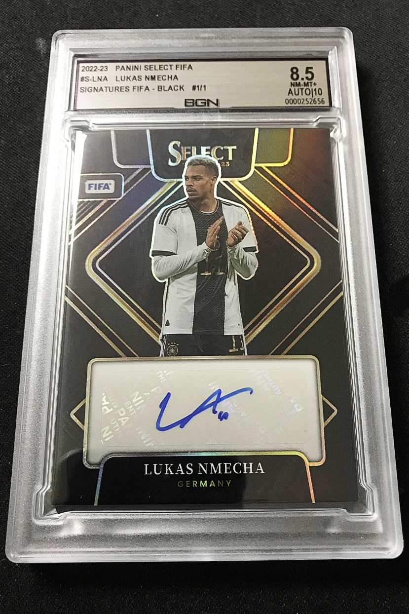 2022-23 Panini Select 恩梅查 Lukas Nmecha 【1of1】正黑折一编 德国队中锋大恩梅加 英超 利兹联 德甲 沃尔夫斯堡 1编 1/1 BGN评级 签字10分完美 赛利特