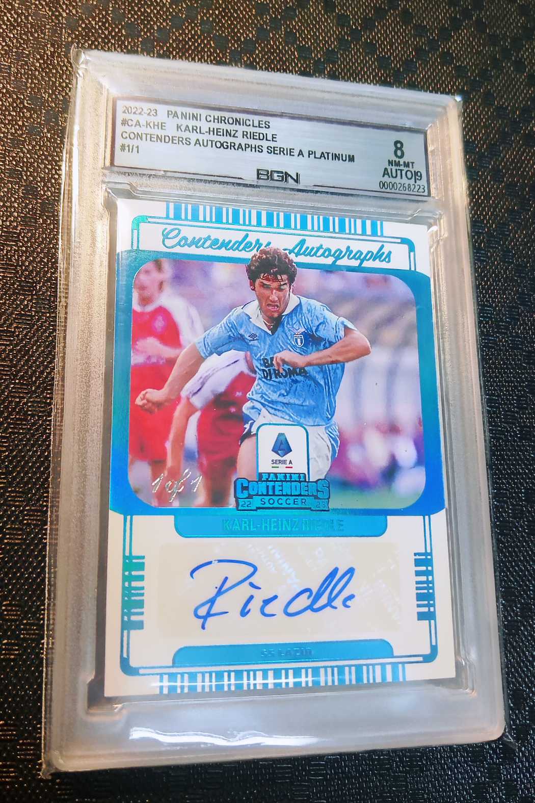 2022-23 Panini Chronicles Karl Heinz Riedle 【1of1 球票签】德国队签字卡里德尔 意甲拉齐奥 编年史一编 湖水蓝 1编BGN评级 德甲多特蒙德 英超利物浦