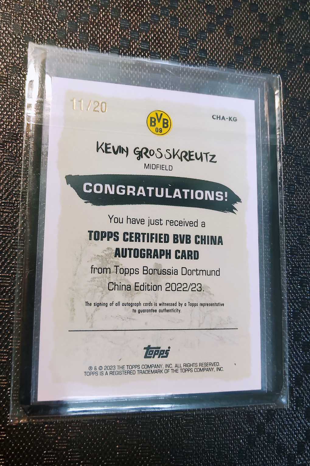 2022-23 Topps 多特蒙德足球俱乐部 格罗斯克洛伊茨 Kevin Grosskreutz 20编签字卡 黑折 卡品墨迹完美 德国队2014世界杯冠军成员