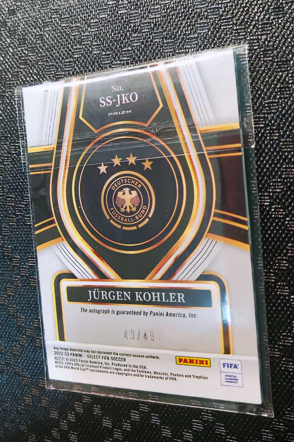 2022-23 Panini Select 尤尔根·科勒Jurgen Kohler 49/49尾编 紫折签字卡 签名墨迹完美 德国队历史最优秀盯人中卫 巴斯滕一生之敌 多特蒙德功勋 尤文图斯名宿
