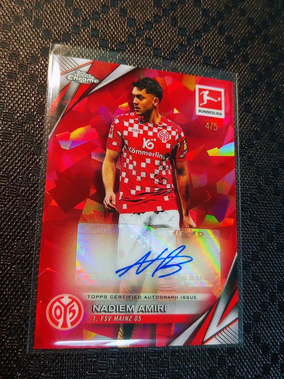 2024-25 Topps 德甲 Chrome 阿米里 Nadiem Amiri 【超低编5编】红碎冰 colour match 美因茨核心 德国队 勒沃库森 霍芬海姆 背面系列通病微瑕