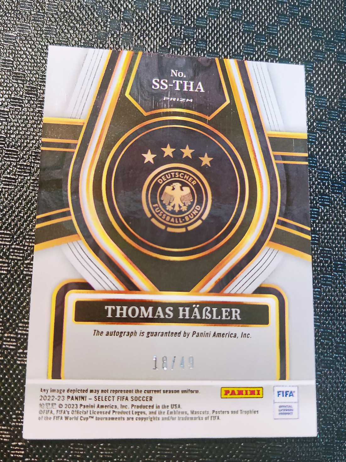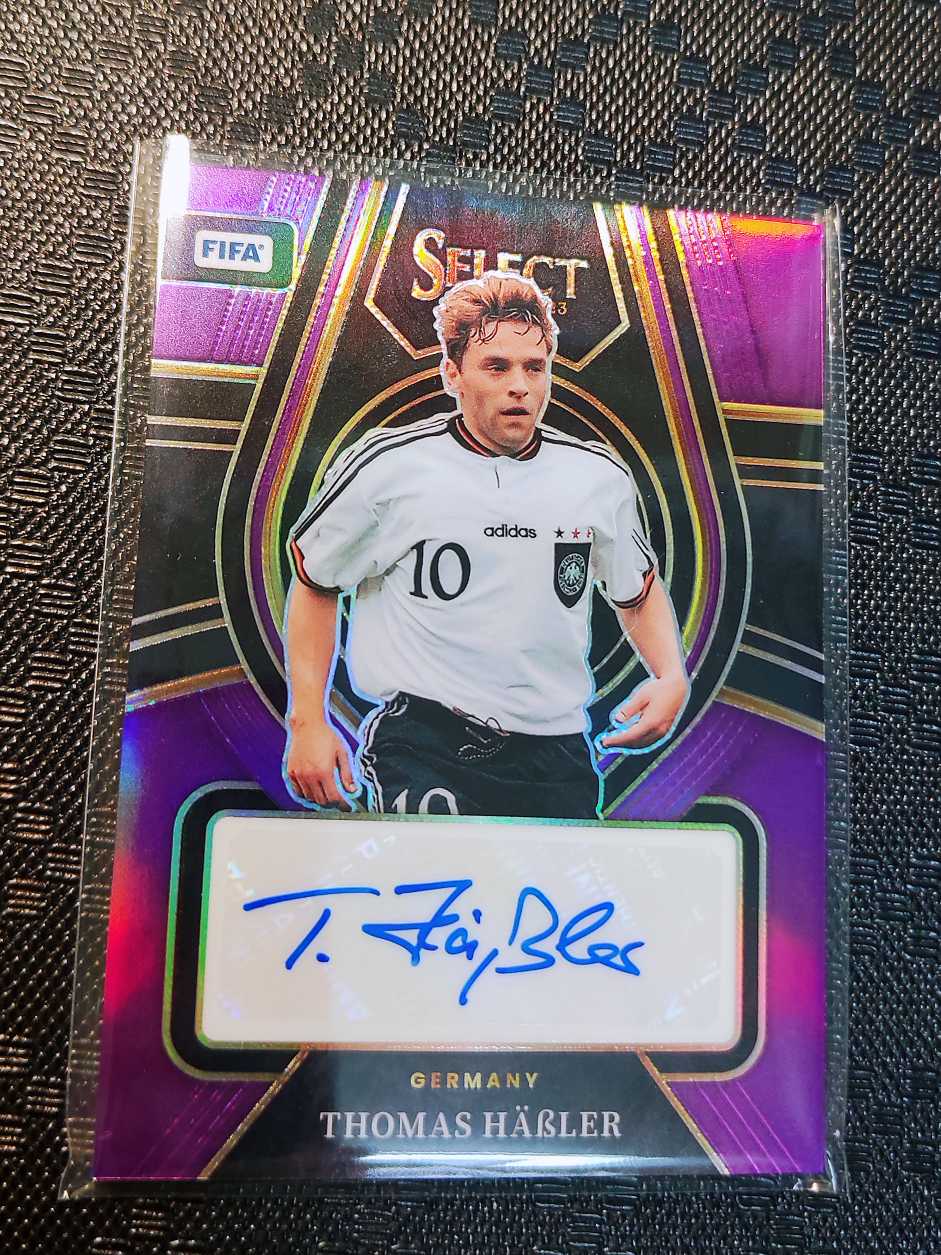 2022-23 Panini Select 哈斯勒 Thomas Hasler 49编紫折签字卡 签名墨迹完美 1990德国队世界杯夺冠名宿 1996欧洲杯冠军队主力 意甲罗马 德甲邵佳一任意球师父