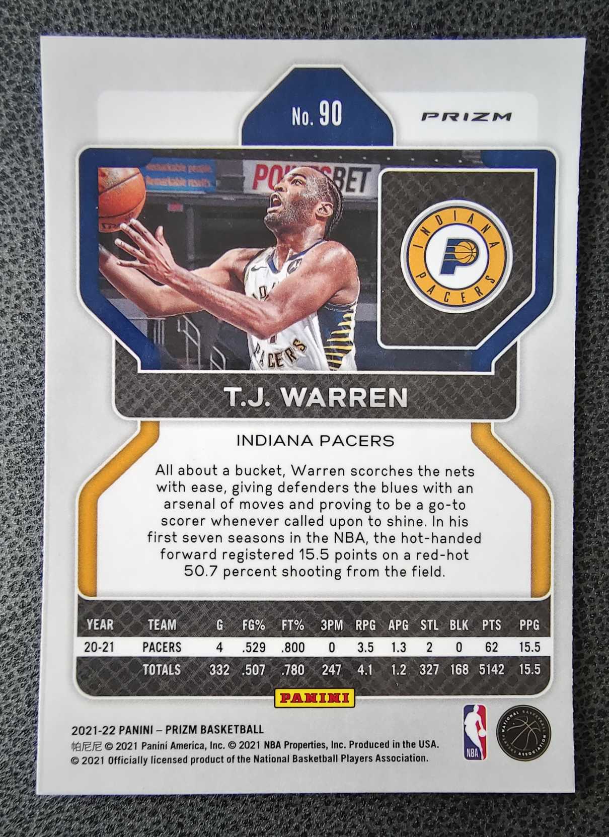 2021-22 Panini Prizm T.J. Warren T.J.沃伦 印第安纳 步行者队 75周年纪念折 蓝折