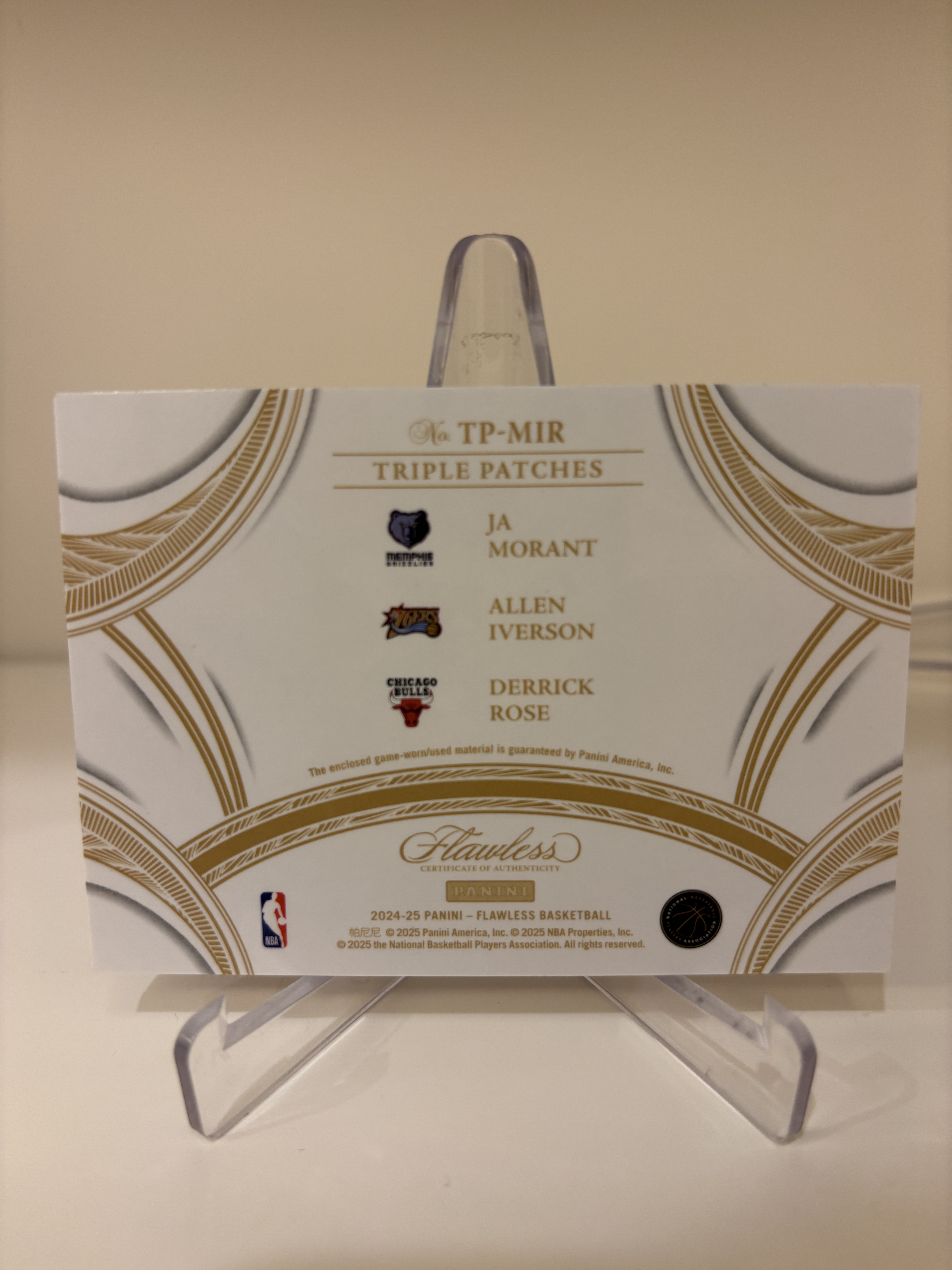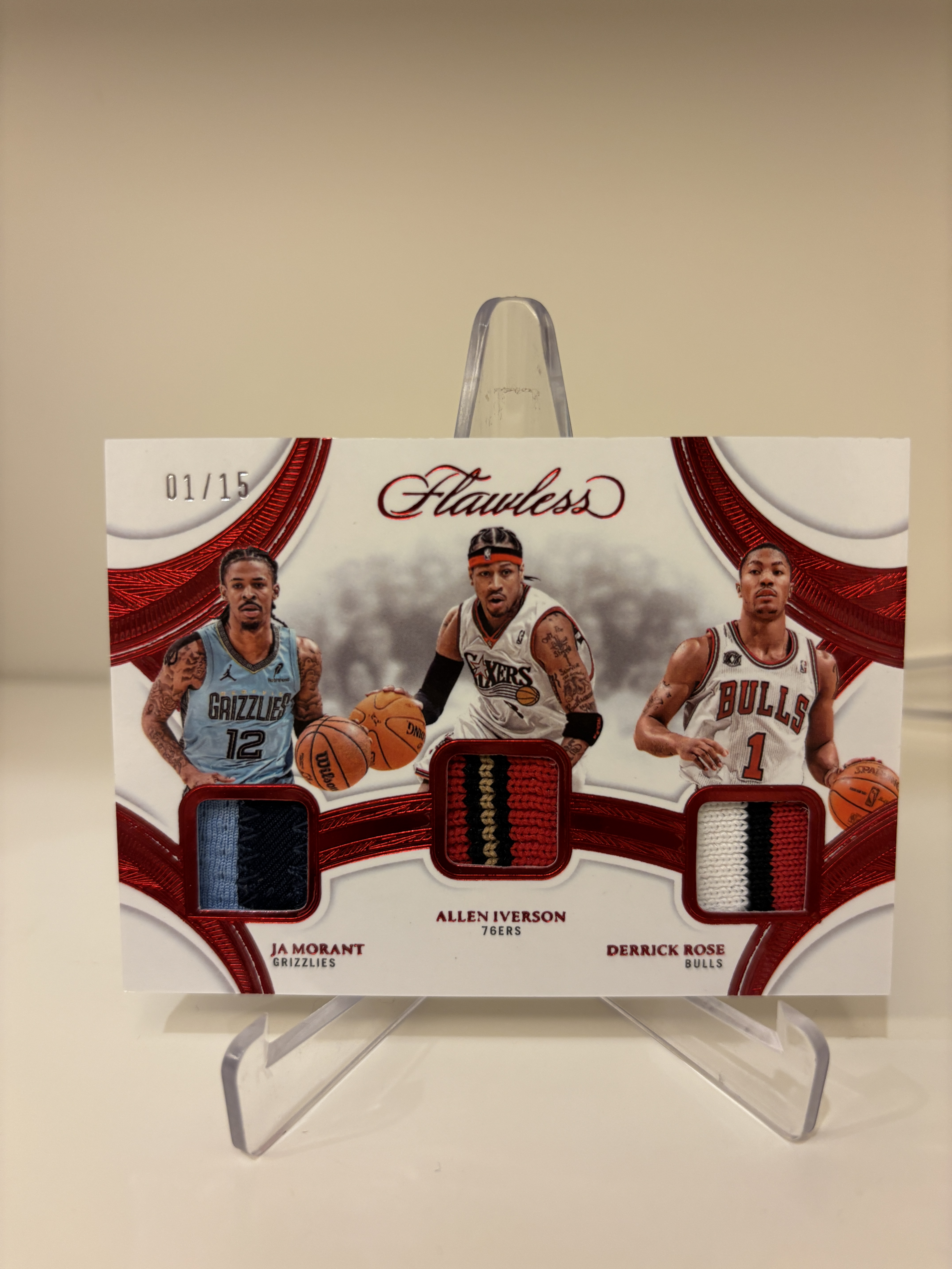 2025 Panini Flawless Derrick Rose 罗斯 莫兰特 艾弗森 手提1/15编首编红平行 三人亲穿gu物料暴力切割 罗斯艾弗森同背 公牛灰熊76人非签字签名