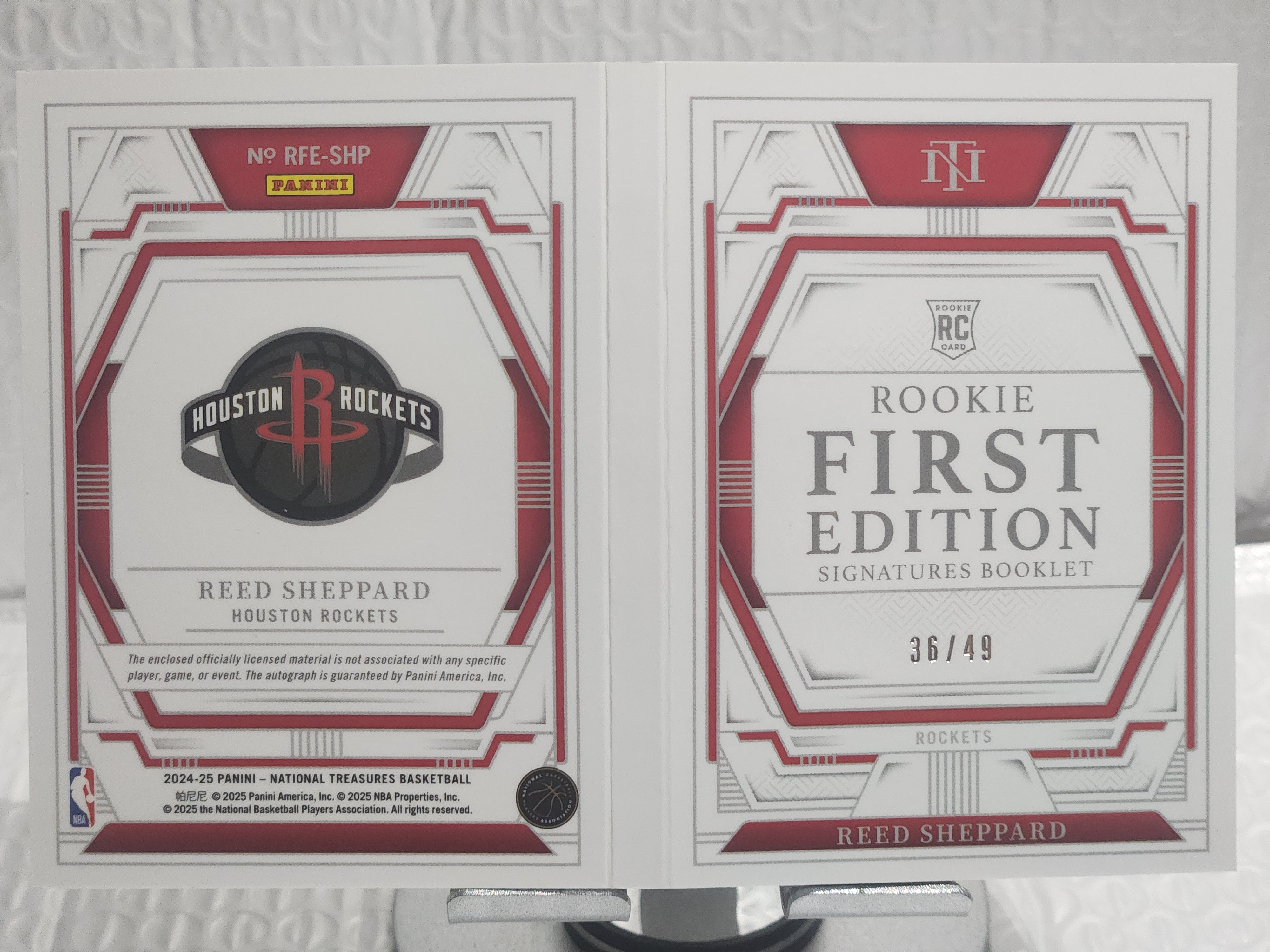 2024-25 Panini National Treasures 谢泼德 RC 国宝 火箭 新秀 Reed Sheppard 签字 36/49编 小书 RPA 暴力切割 卡品如图