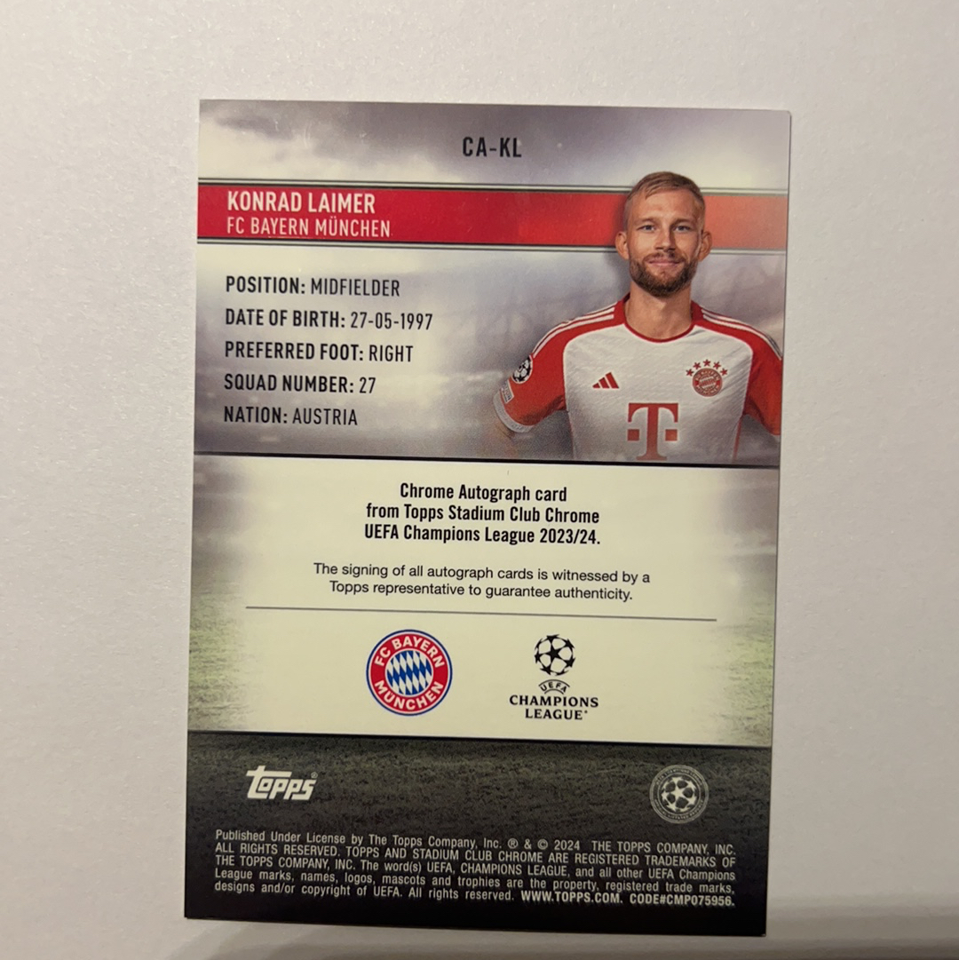 2024 Panini UEFA Champions League Konrad Laimer 莱默尔 欧冠Chrome系列签字 拜仁中场核心 德甲冠军成员 奥地利国脚 凑套必选