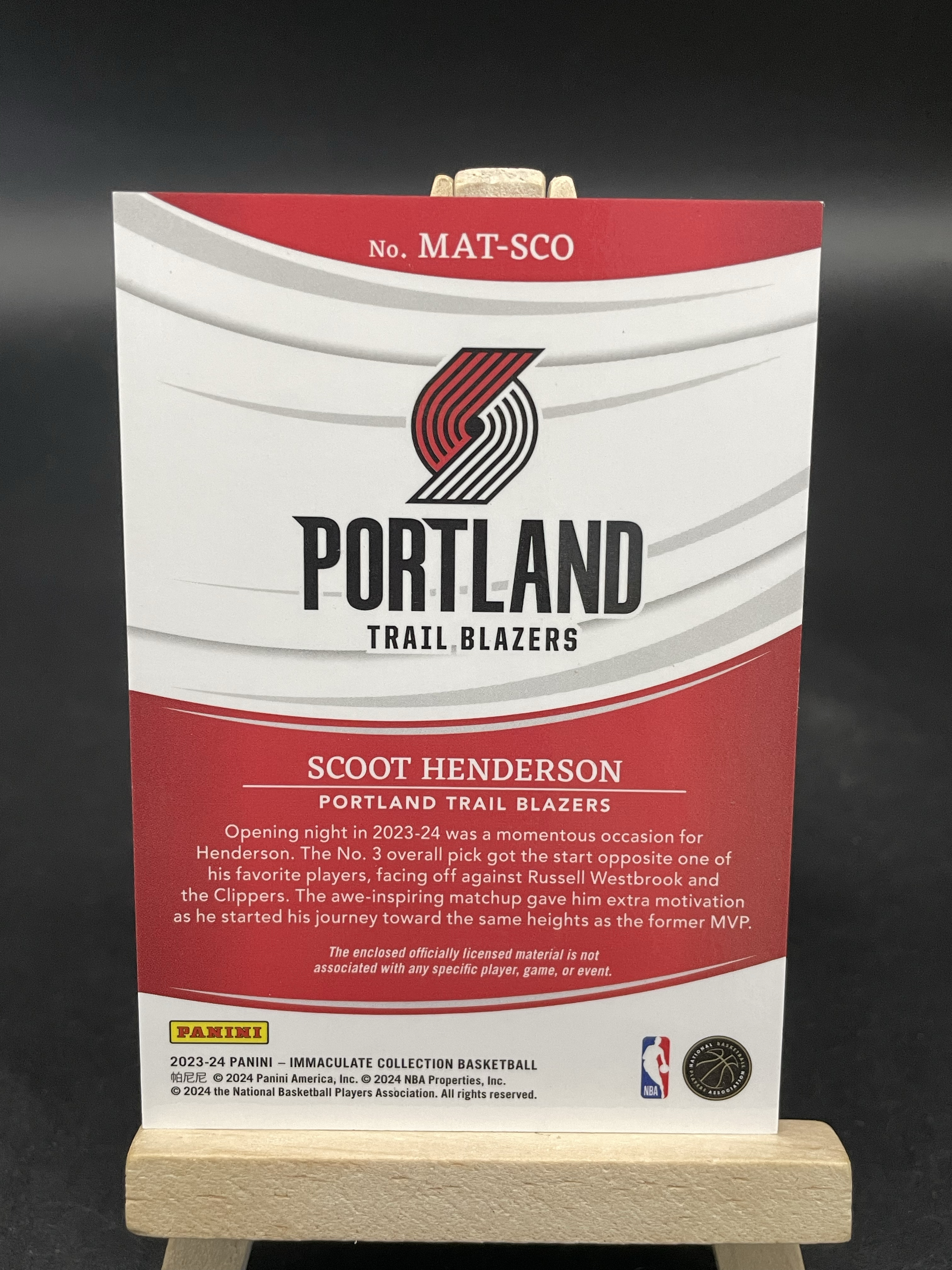 2023-24 Panini Immaculate Scoot Henderson RC 【白鸟代卖 小虎】IMM湖水蓝 斯库特 亨德森 新秀 1/1编ofo 一编一 tag patch球衣 微瑕如图
