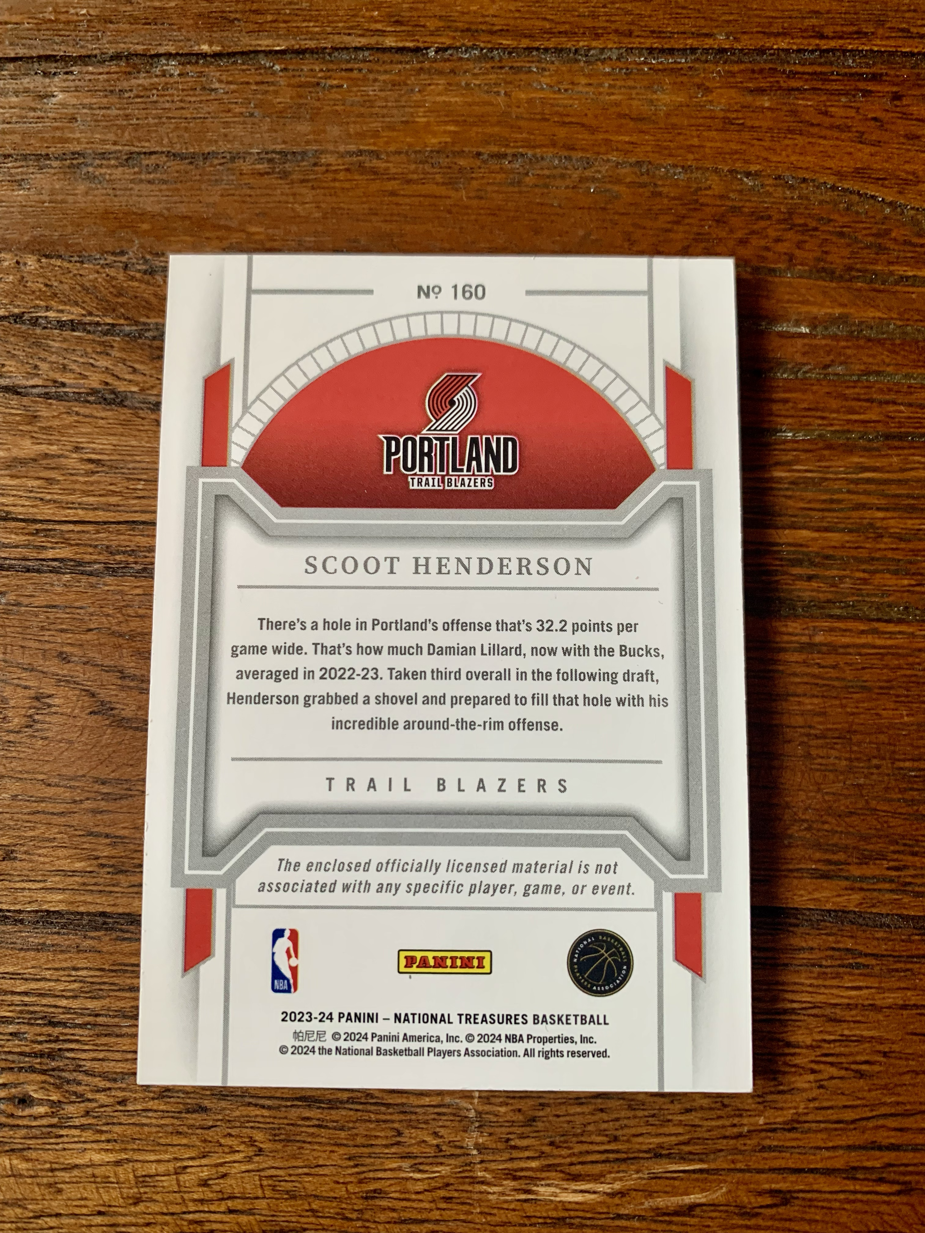 2023-24 Panini National Treasures Scoot Henderson RC 斯库特-亨德森 新秀 国宝正rp99编 patch暴力切割 开拓者杨瀚森翰森阿夫迪亚卡马拉队友