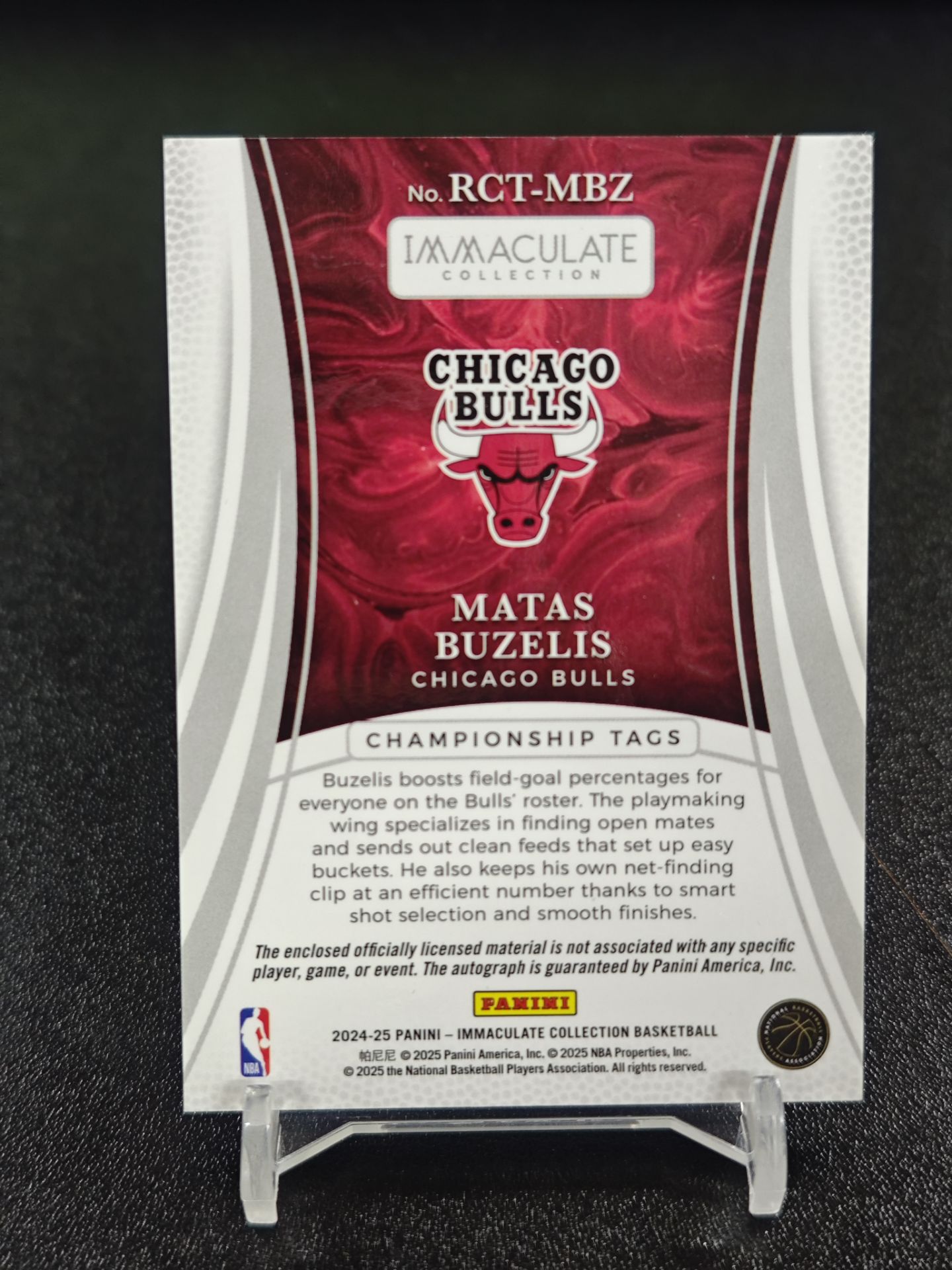 【浩行拍卖】2024-25 panini Immaculate 公牛 马塔斯 布泽利斯 rc 新秀 签字 卡签 球衣 物料 patch 暴力切割 tag rpa rta 冠军tag签 1/5编 首编 金平行 瑕疵看图「术兔」1019D06單