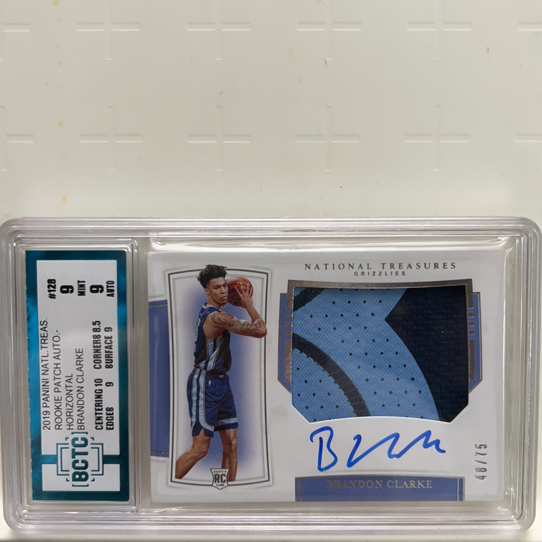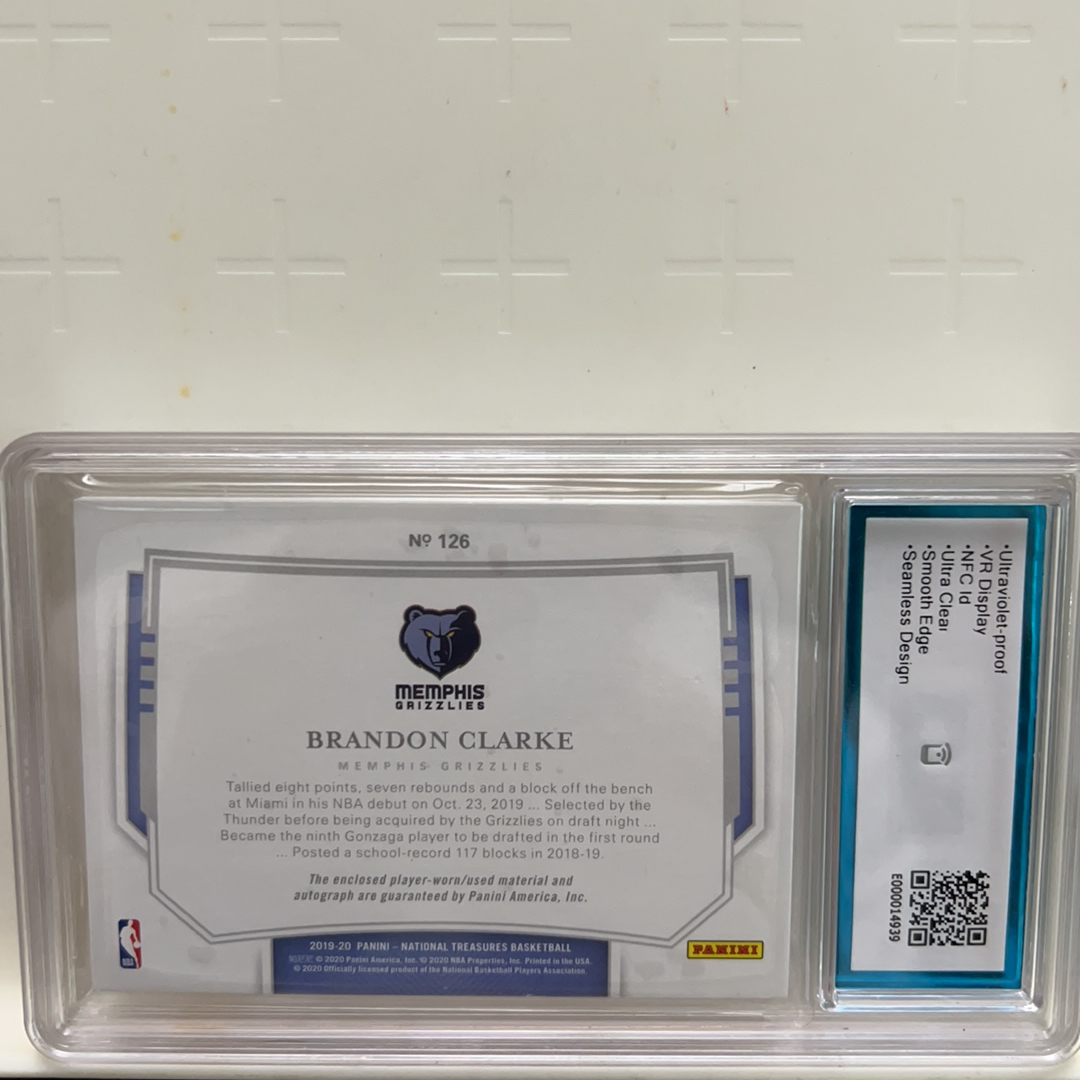 2019-20 Panini National Treasures Brandon Clarke RC 国宝 新秀 落场球衣实物patch 签字 卡签 灰熊 克拉克 48/75编 评级 莫兰特队友