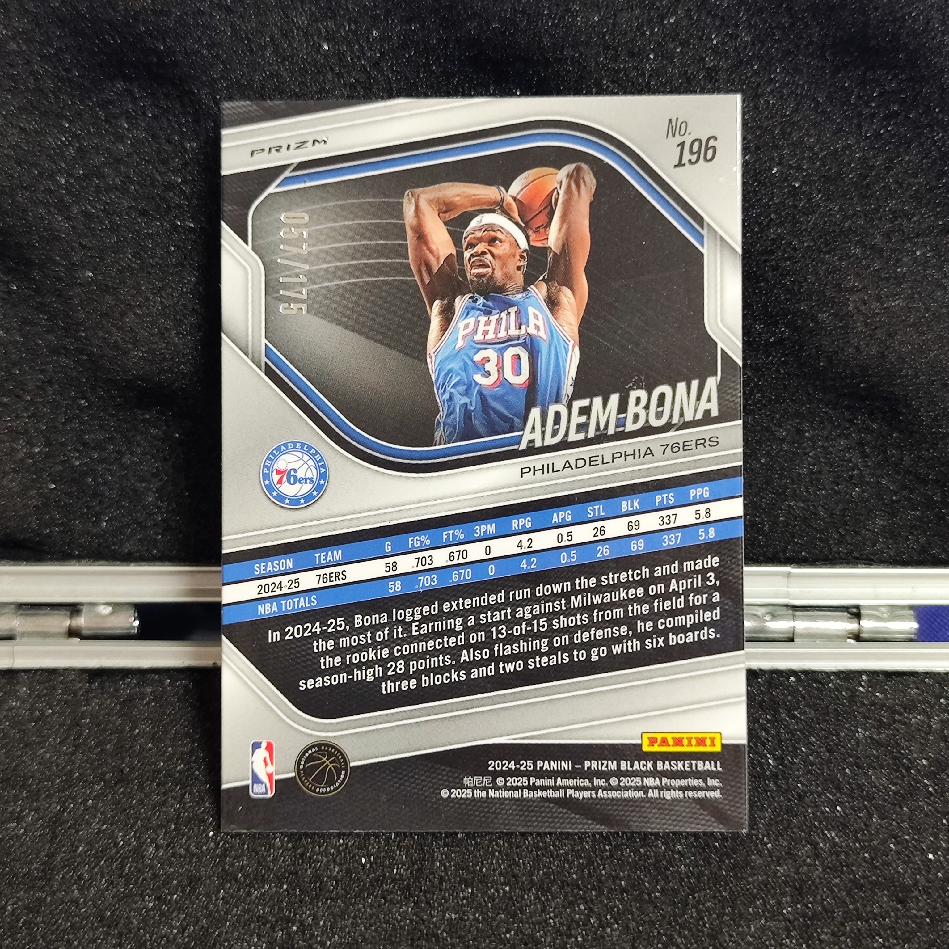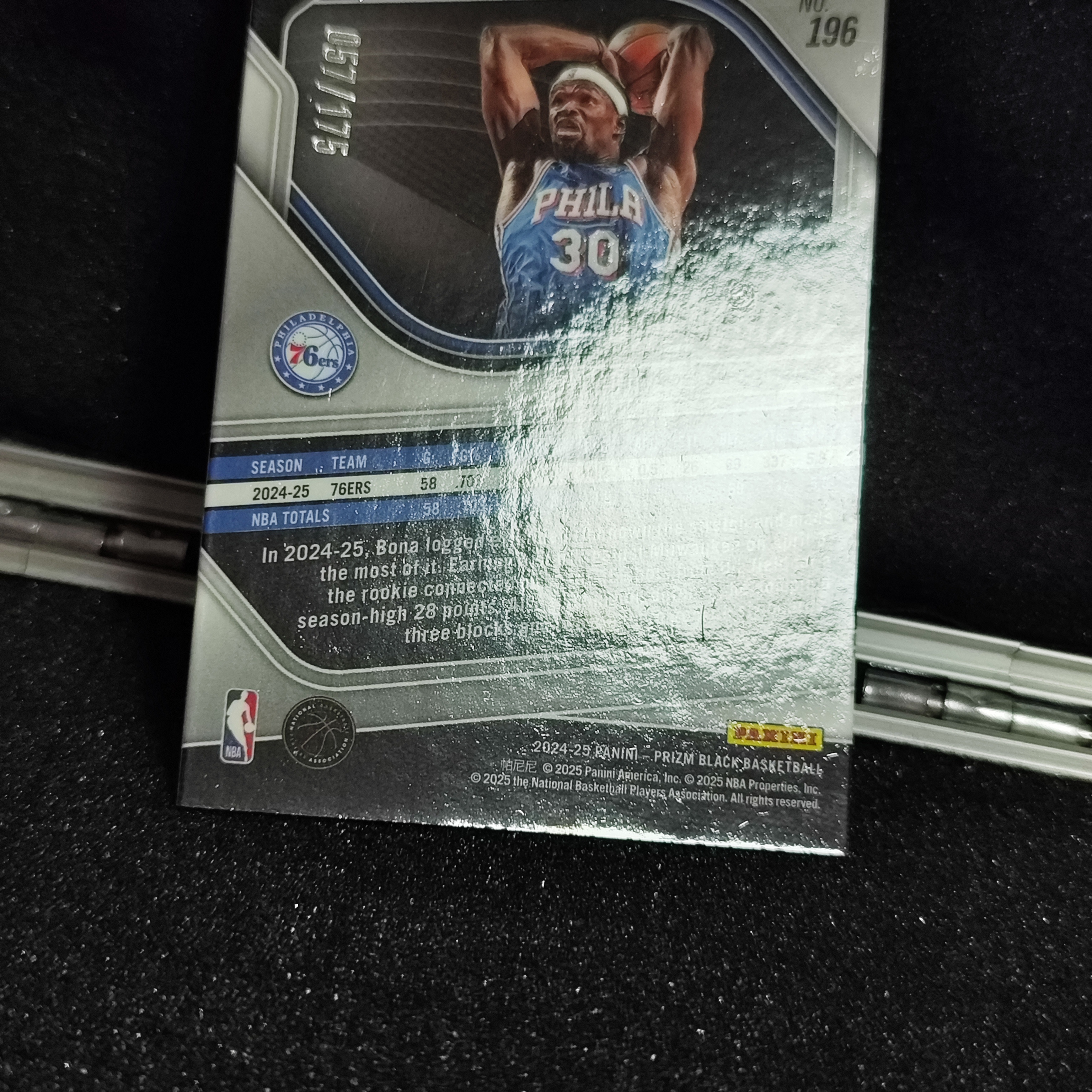 2024-25 Panini PRIZM BLACK Adem Bona RC pz 博纳 /175编 象牙白折射 76人 新秀正BASE 麦凯恩马克西恩比德队友 细节如图 公羽