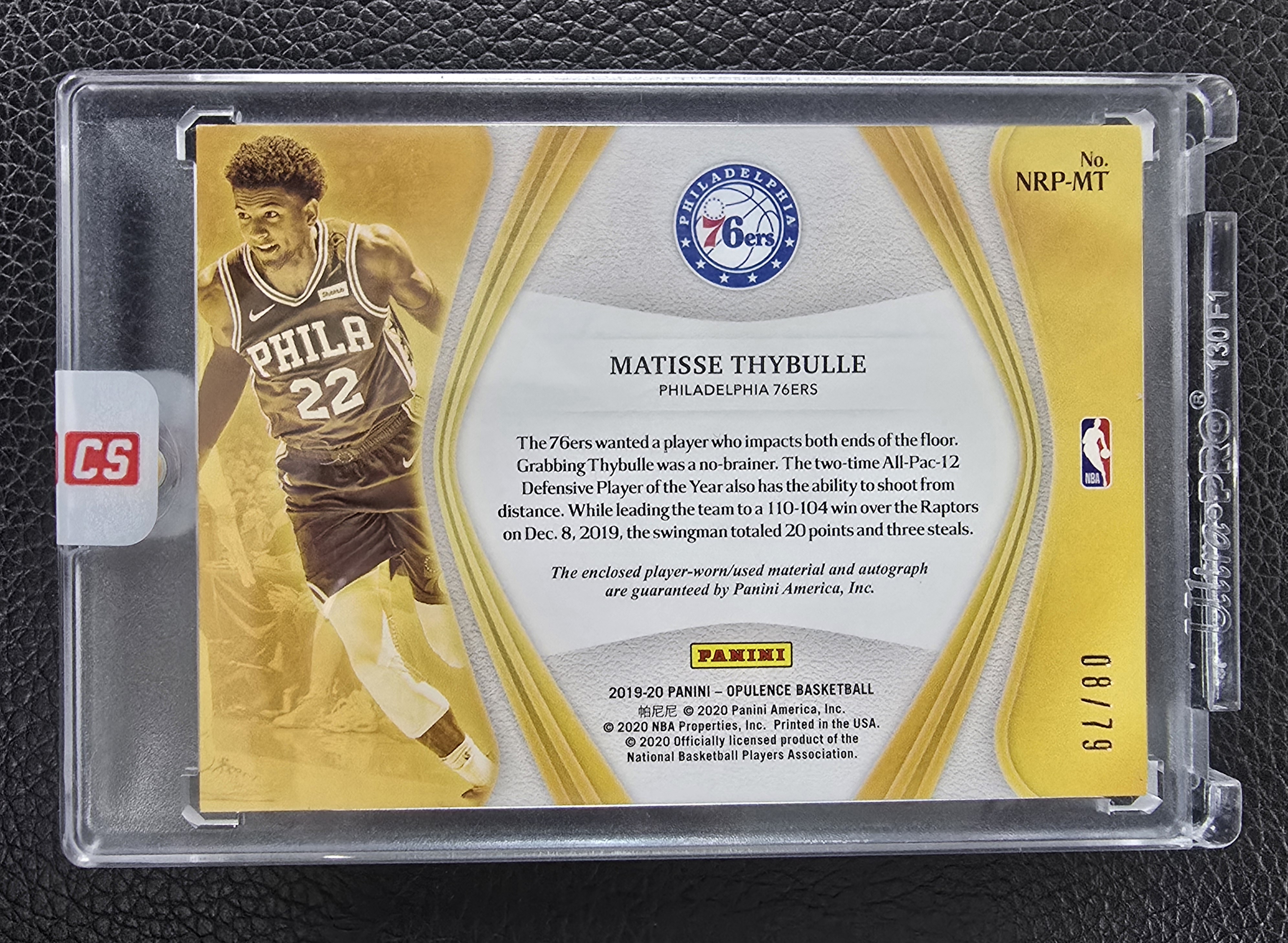 2019-20 Panini Opulence Matisse Thybulle RC 【小草卡店】76人新秀 赛布尔 /79编RPA 卡签 三色球衣切割 墨迹完美 外线防守大师 金书系列末年 原封砖