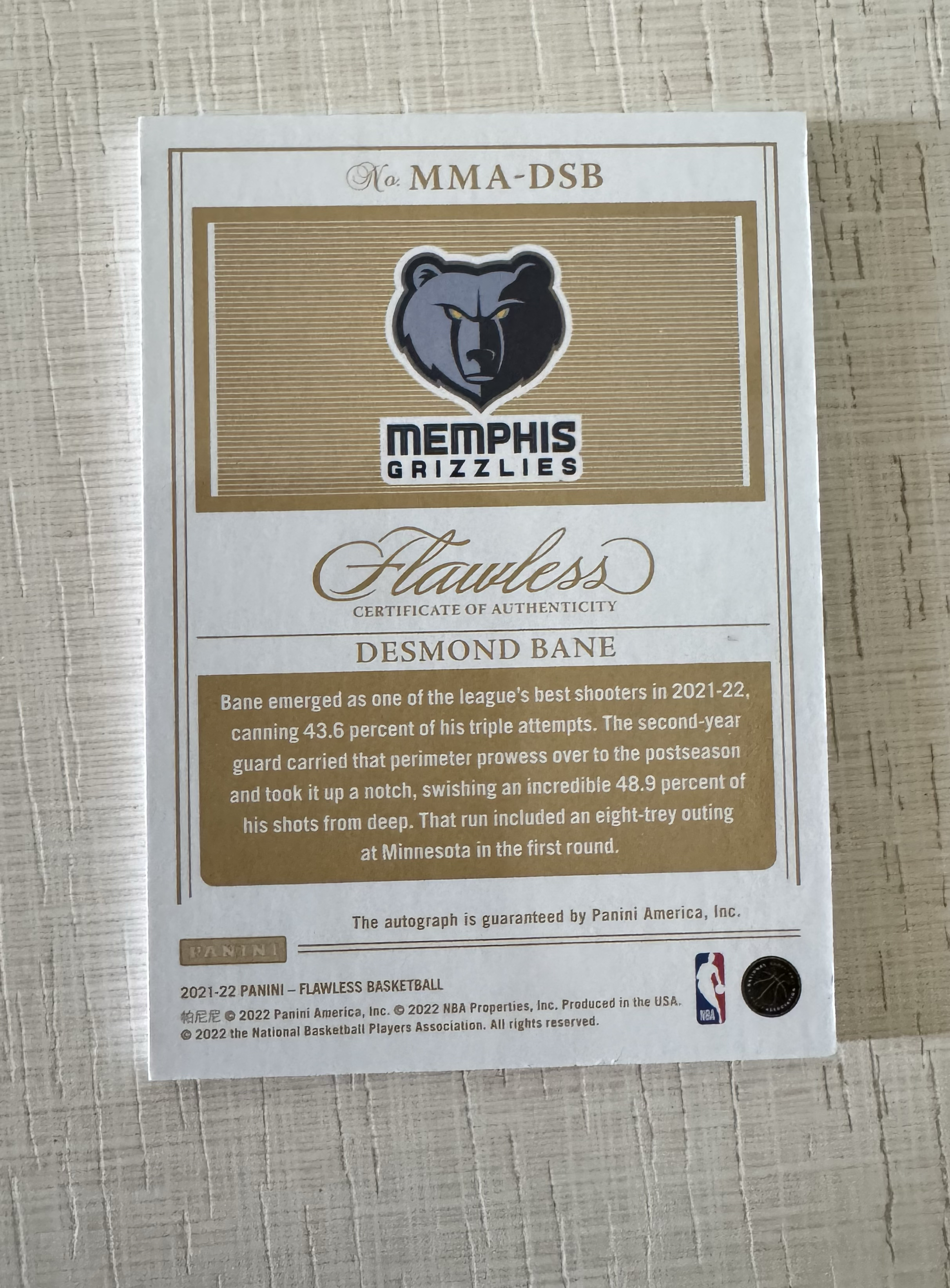 2021-22 Panini Flawless Desmond Bane 戴斯蒙德 贝恩 25编 签字 手提 卡签 高端系列