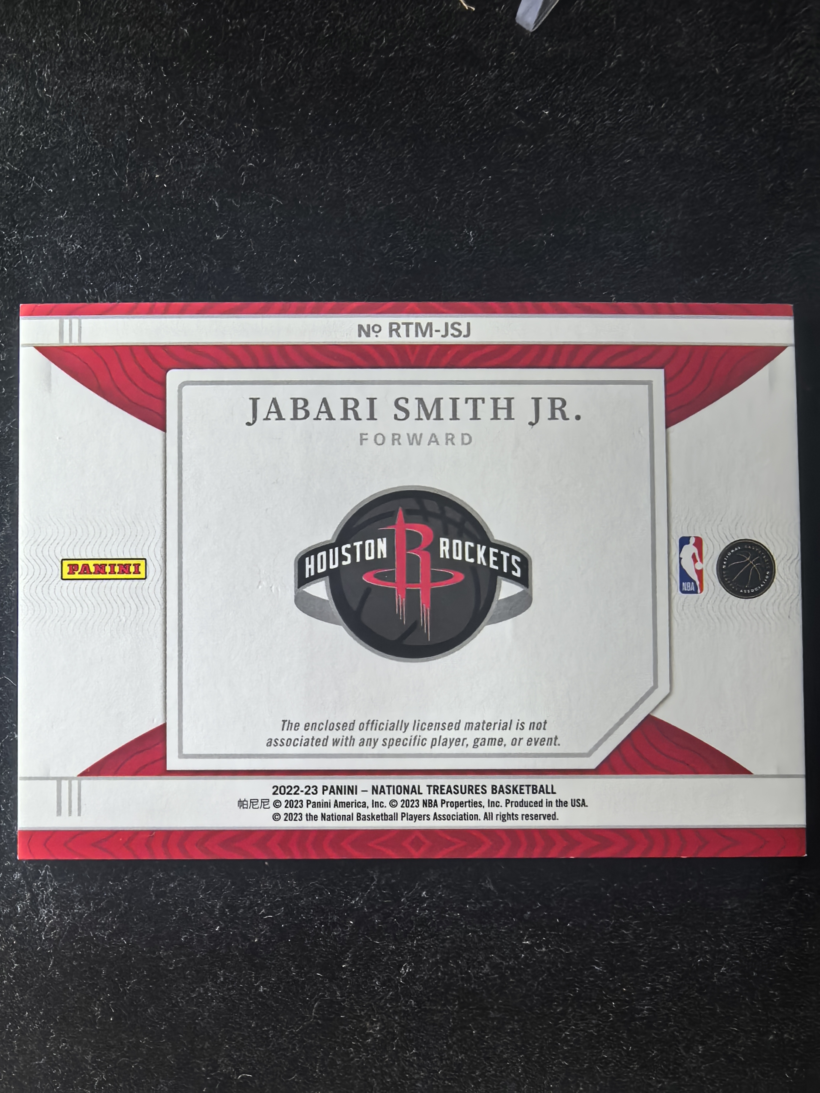 2022-23 Panini National Treasures Jabari Smith Jr. RC 小贾巴里 史密斯 25编 国宝 球衣物料 patch RC 火箭 申京 阿门 杜兰特 队友