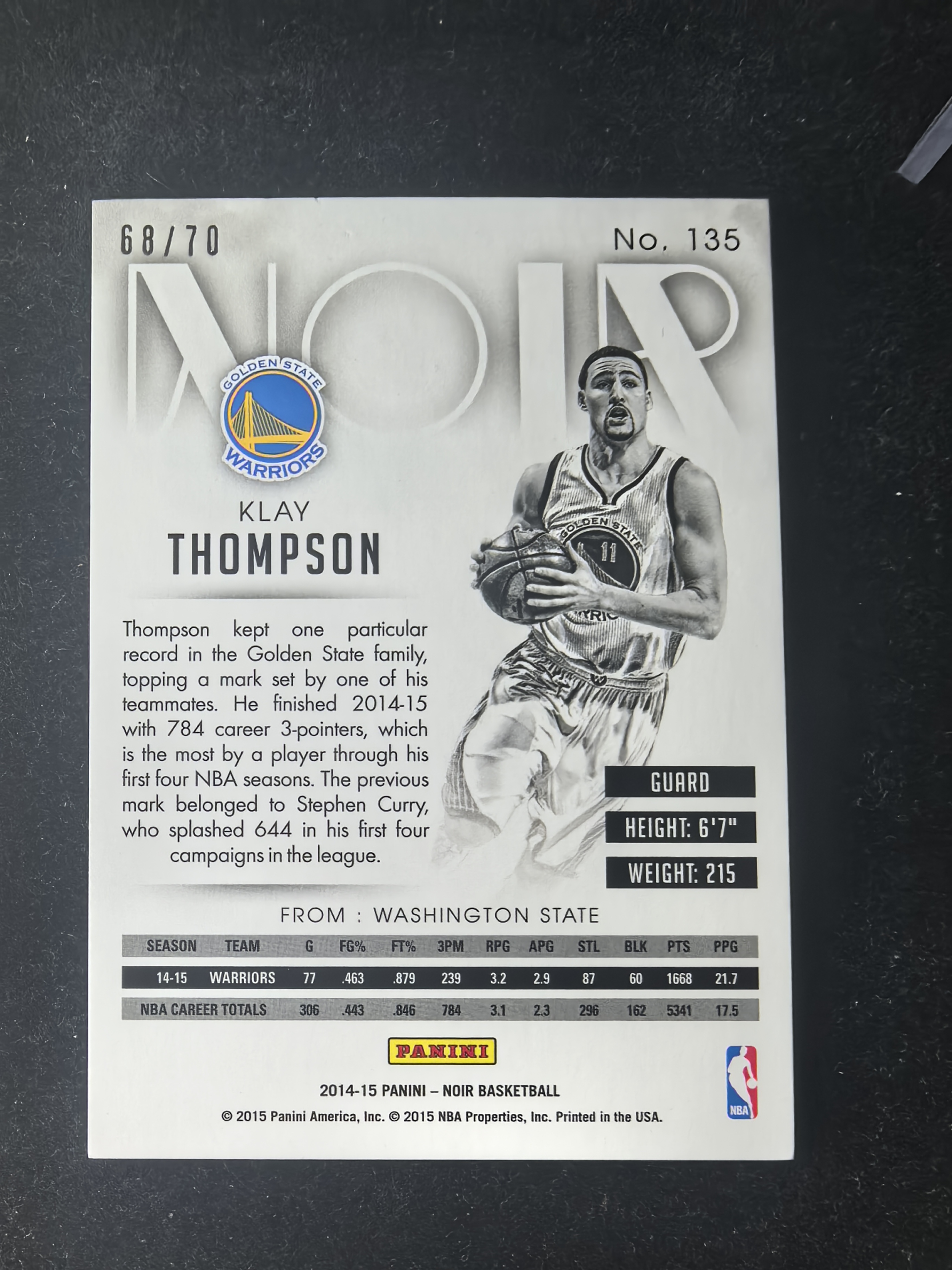2014-15 Panini Noir Klay Thompson 克莱 汤普森 佛祖 70编 诺尔 勇士 水花兄弟 库里 队友经典选图 值得收藏