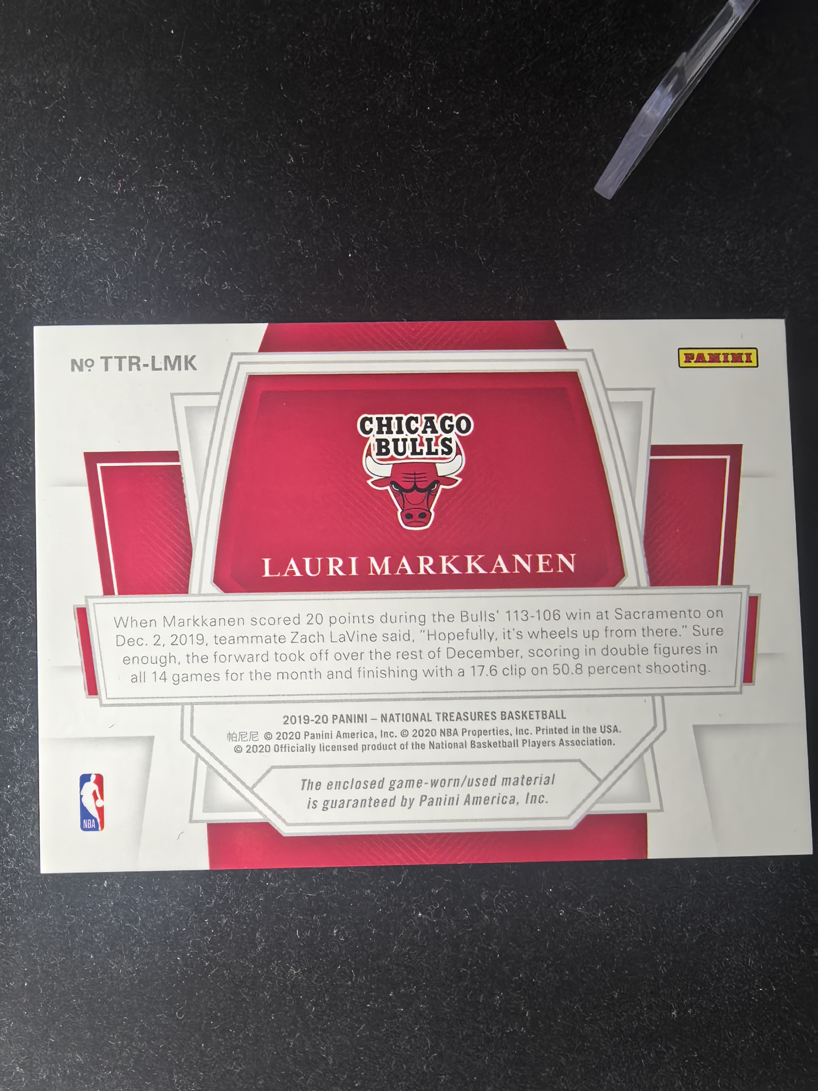 2019-20 Panini National Treasures Lauri Markkanen 马尔卡宁 99编 国宝 球衣 物料 亲穿 公牛 芬兰 潜力 新秀