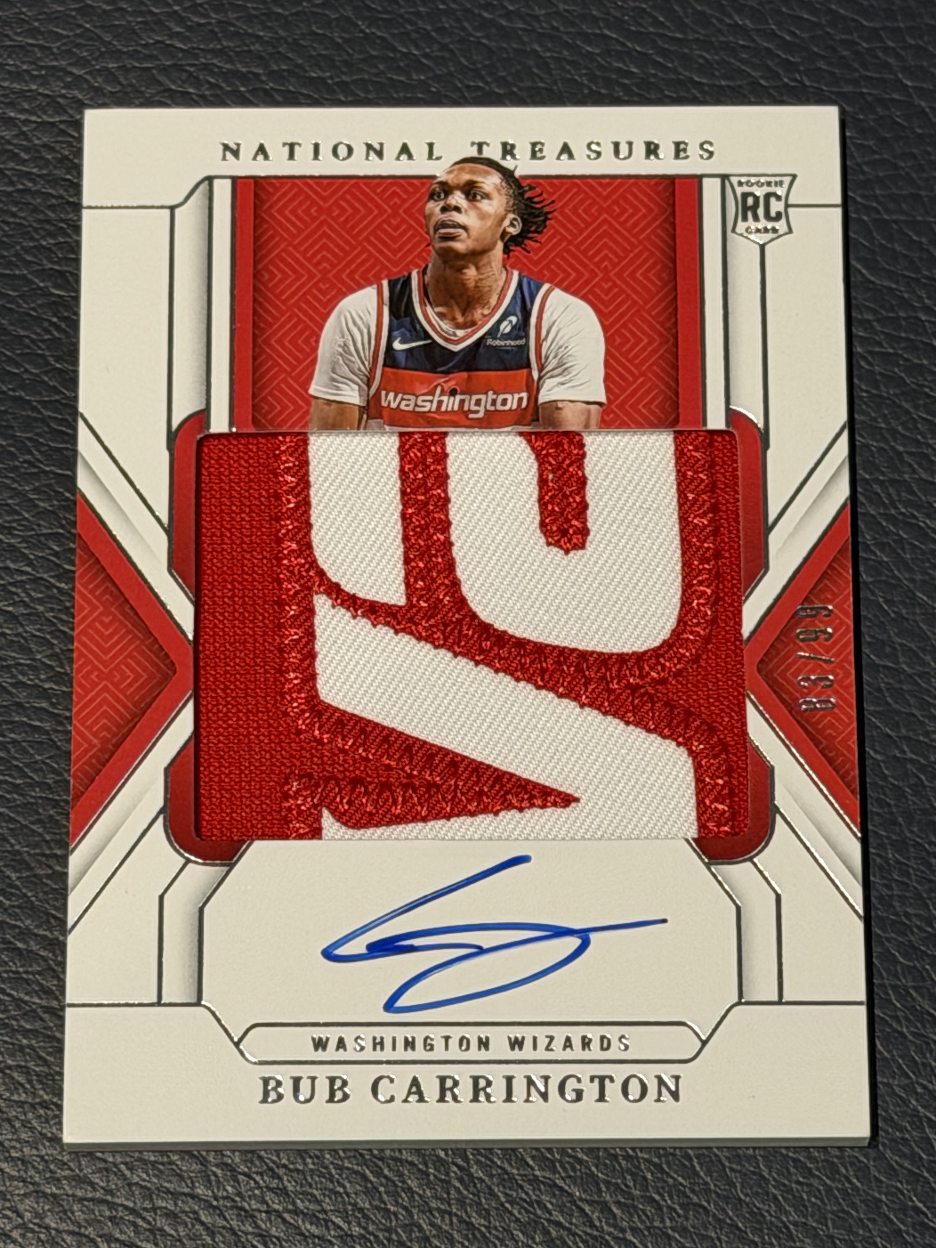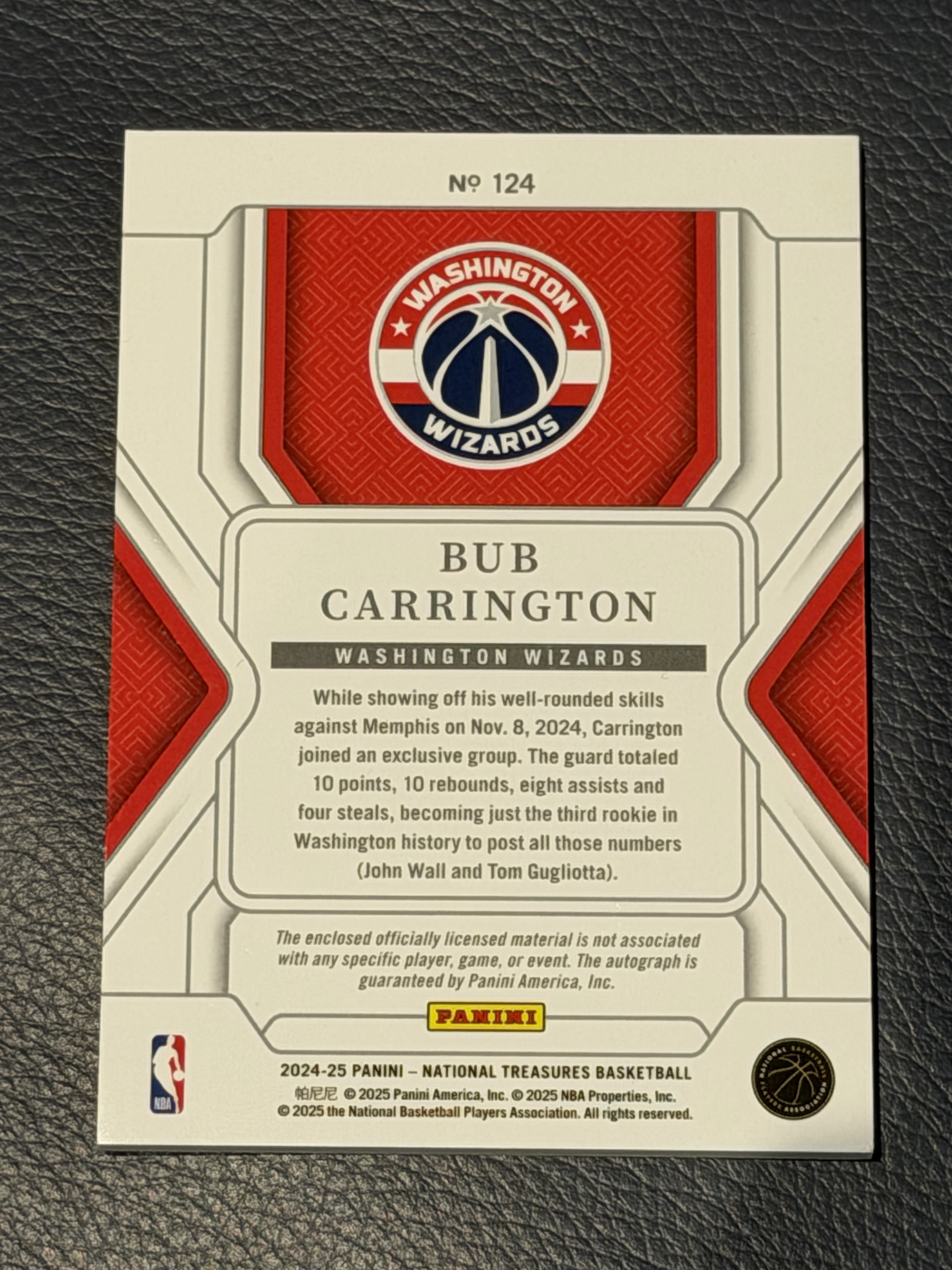 2025 Panini National Treasures Carlton Carrington RC 卡林顿 新秀国宝83/99编正rpa签字 卡灵顿 奇才乔治萨尔库利巴利惠特莫尔队友卡品如图