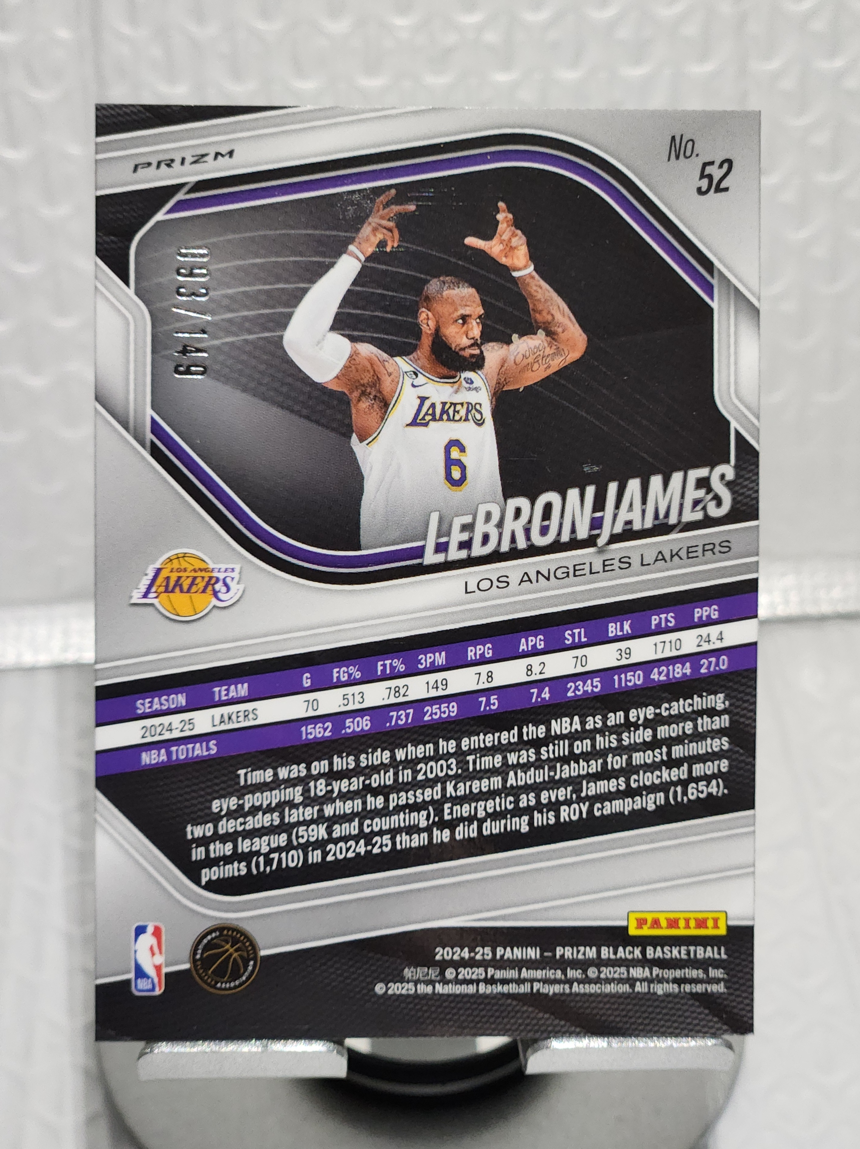 2024-25 Panini Prizm Black LeBron James 勒布朗 詹姆斯 LJB 老詹 湖人 戴皇冠选图 PZ 紫碎冰折 093/149编 卡品如图