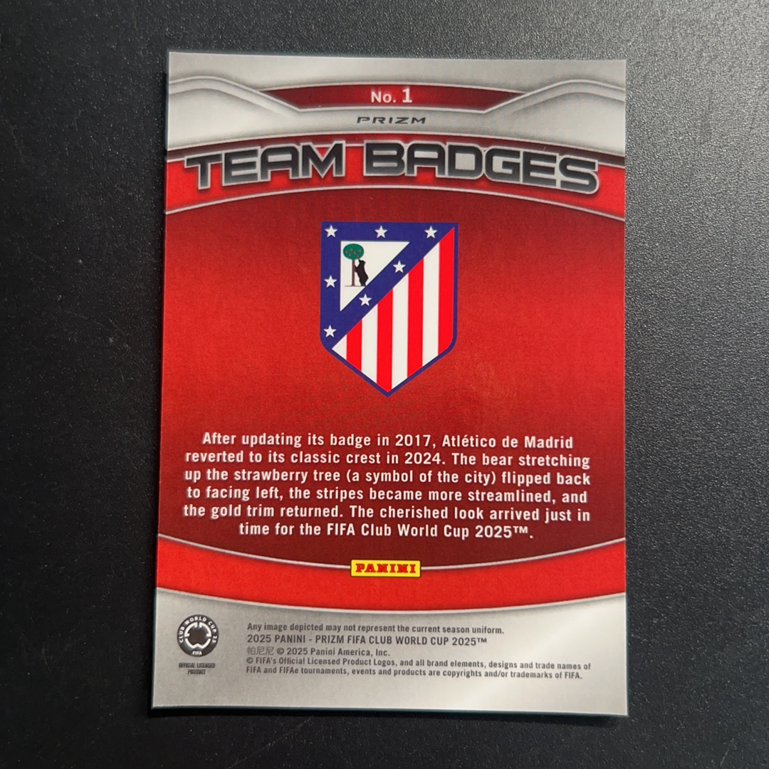 2025 Panini Prizm Club Atlético de Madrid Pz世俱杯 马德里竞技 马竞 队徽 队标 Team Badges 银折 卡品如图