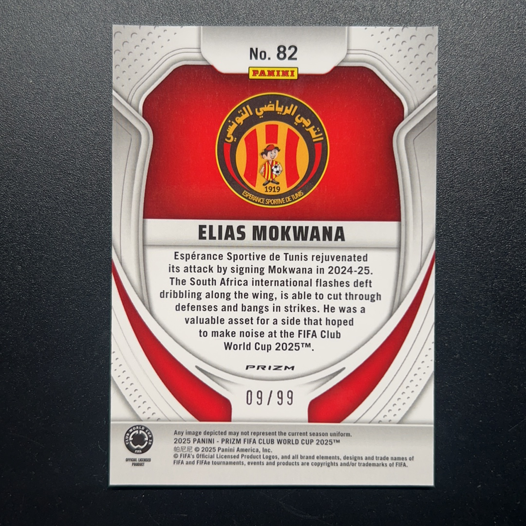 2024-25 Panini Prizm ELIAS MOKWANA RC 世俱杯 pz 莫克瓦纳 突尼斯希望 新秀 09/99编 青折 base 南非国脚 卡品如图