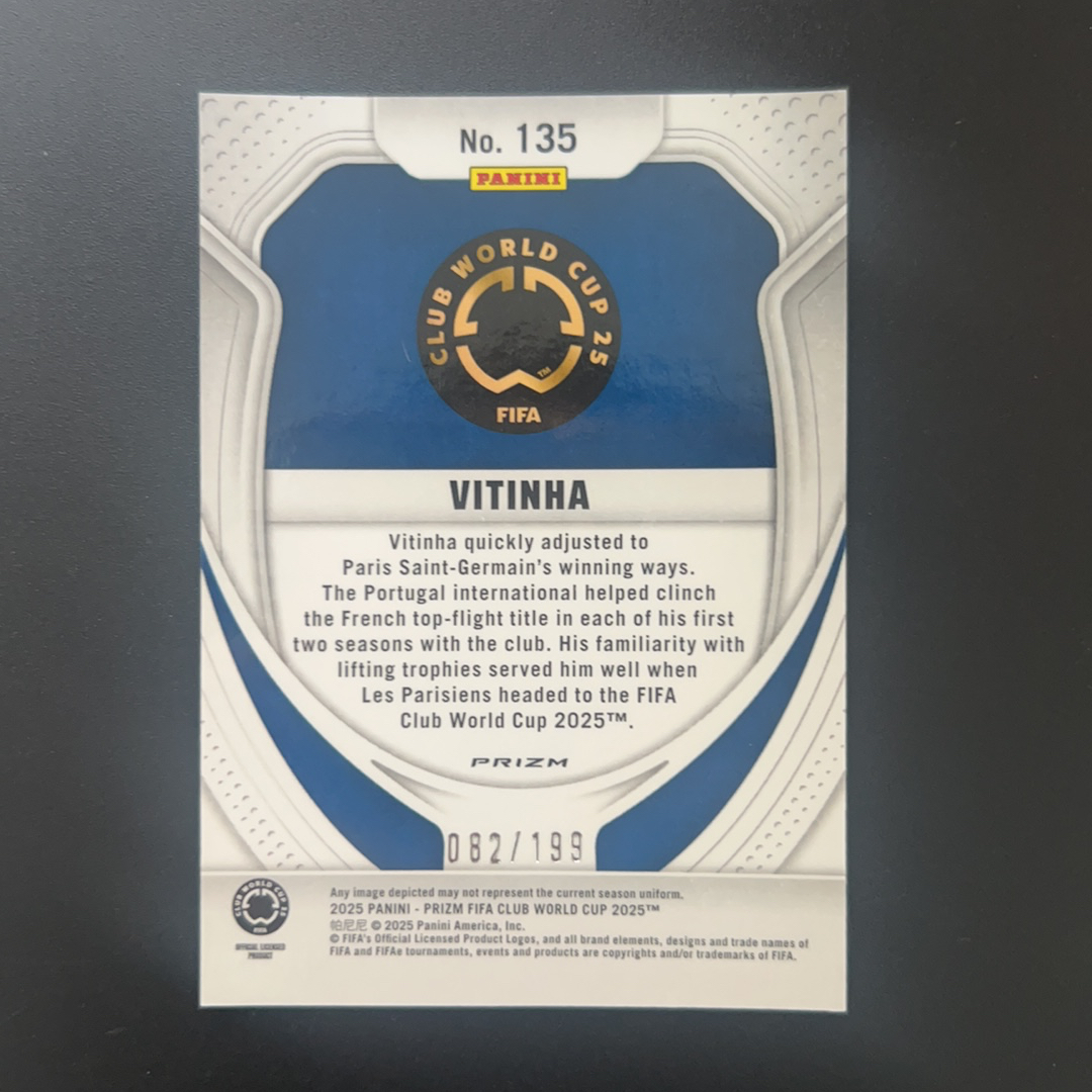 2025 panini prizm FIFA CLUB WORLD CUP 世俱杯维蒂尼亚 Vitinha 巴黎圣日耳曼 葡萄牙 波尔图 欧冠冠军 82/199编 红折 卡品如图