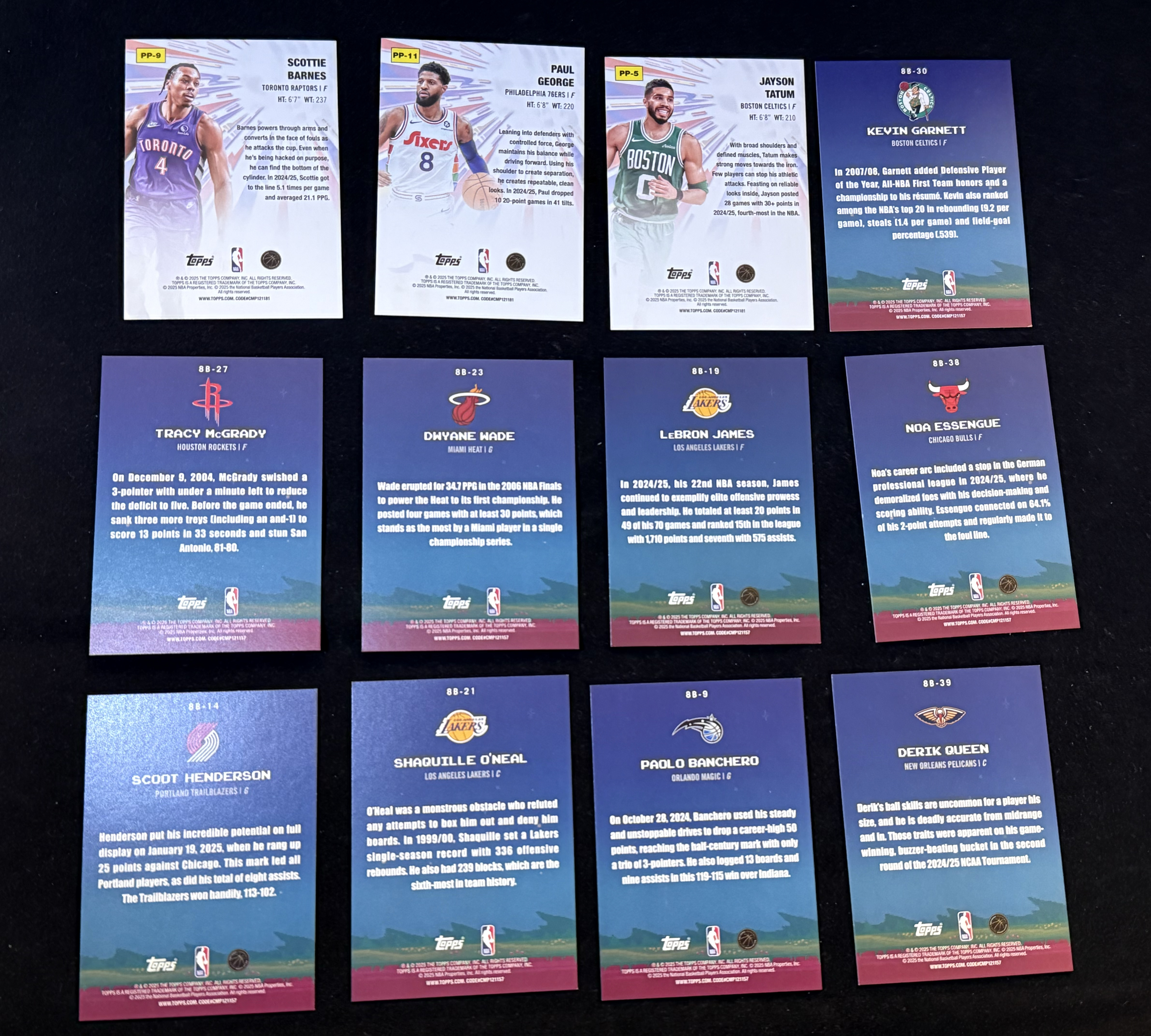卡片状况如图所示,Topps这批卡品一般,多卡不保卡品,如果你对卡品还有什么疑问可以私聊,售出不退不换注意事项: 1,关于卡品问题,有明显问题会标明,折射 镜面 厚卡等特殊卡种很难有完美卡品,比如镜面 折射等会有一些小划痕小点等通病,厚卡和老卡则会有轻微白边等通病,如果追求完美,下单需谨慎,最好是买评级卡片 2,卡片均会精心包装,以最大限度保护好卡 3,拍下当天只要快递不下班都能发出,顺丰到付,如遇金额较大订单建议保价发货,发货前麻烦联系注明,不注明都默认不保价顺丰到付,运输途中卡片出问题自己承担,自行联系快递公司处理 4,售卖的球星卡均属于二手商品,不适用7天无理由退货