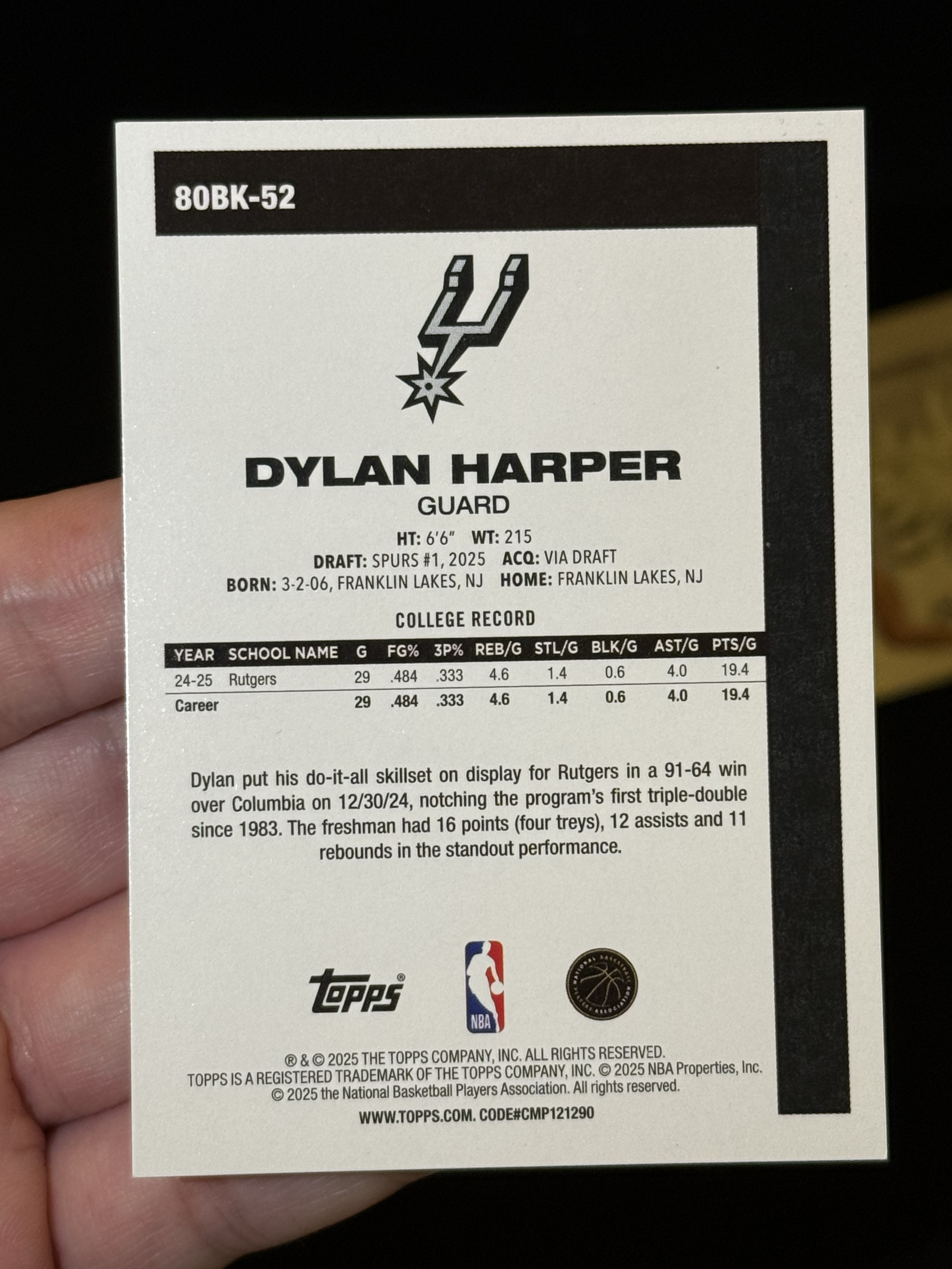 2025-26 Topps flagship 迪伦哈珀 RC Topps最新系列 马刺榜眼秀 哈珀 clutch city特卡 45周年base卡 边边角角卡品一般