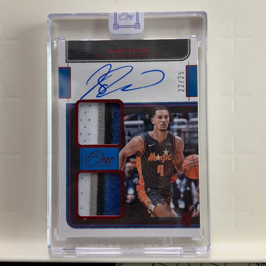 2021-22 Panini One and One Jalen Suggs RC one 魔术 杰伦 萨格斯 新秀 签字 卡签 双窗球衣物料 暴力切割RPA 22/25编 红平行 原封砖