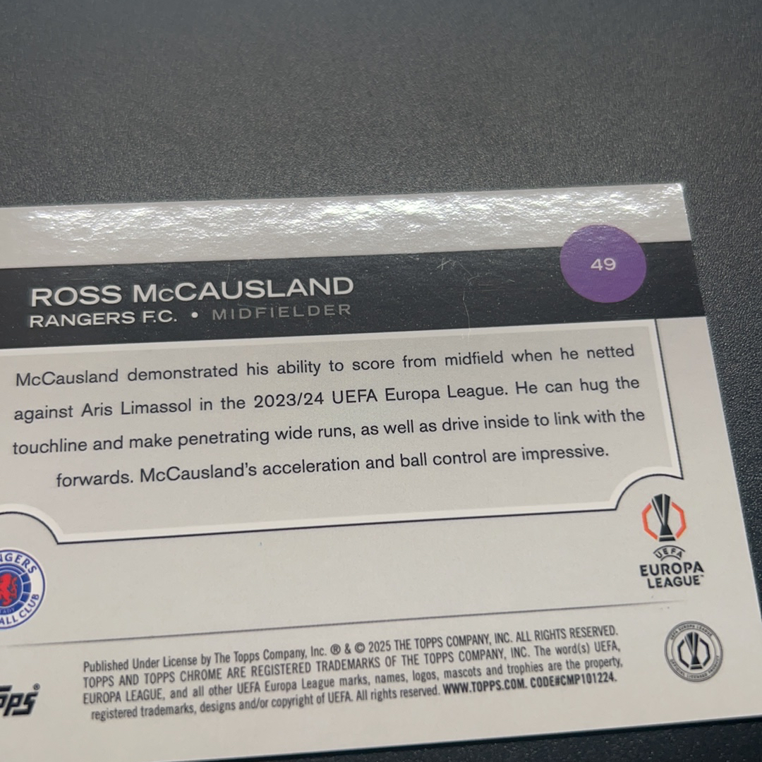 2024-25 Topps chrome 蓝宝石 Ross McCausland 罗斯 麦考斯兰 流浪者 欧联 30/50编 金碎冰折 卡品如图 介意勿拍