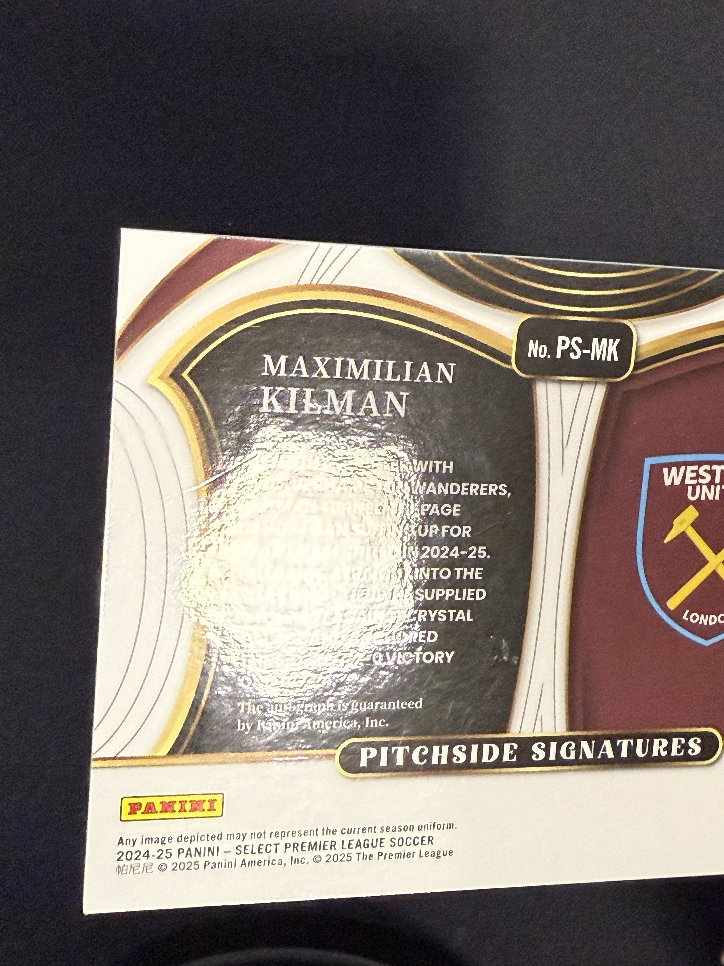 2024-25 Panini Select Max Kilman select英超 西汉姆 基尔曼 银折 签字卡 场边签 英格兰后卫 卡品细节墨迹如图 #免费代拍欢迎咨询