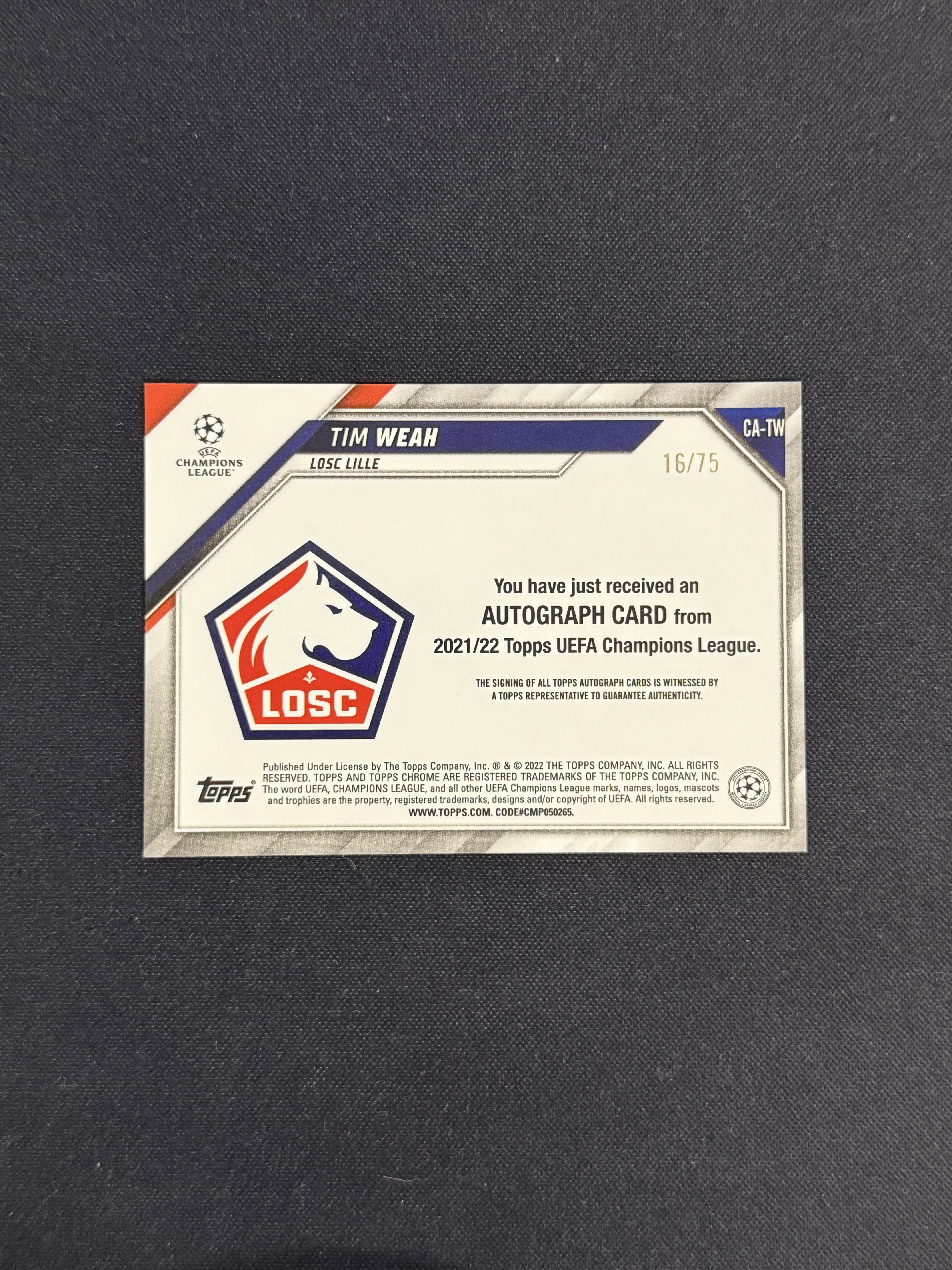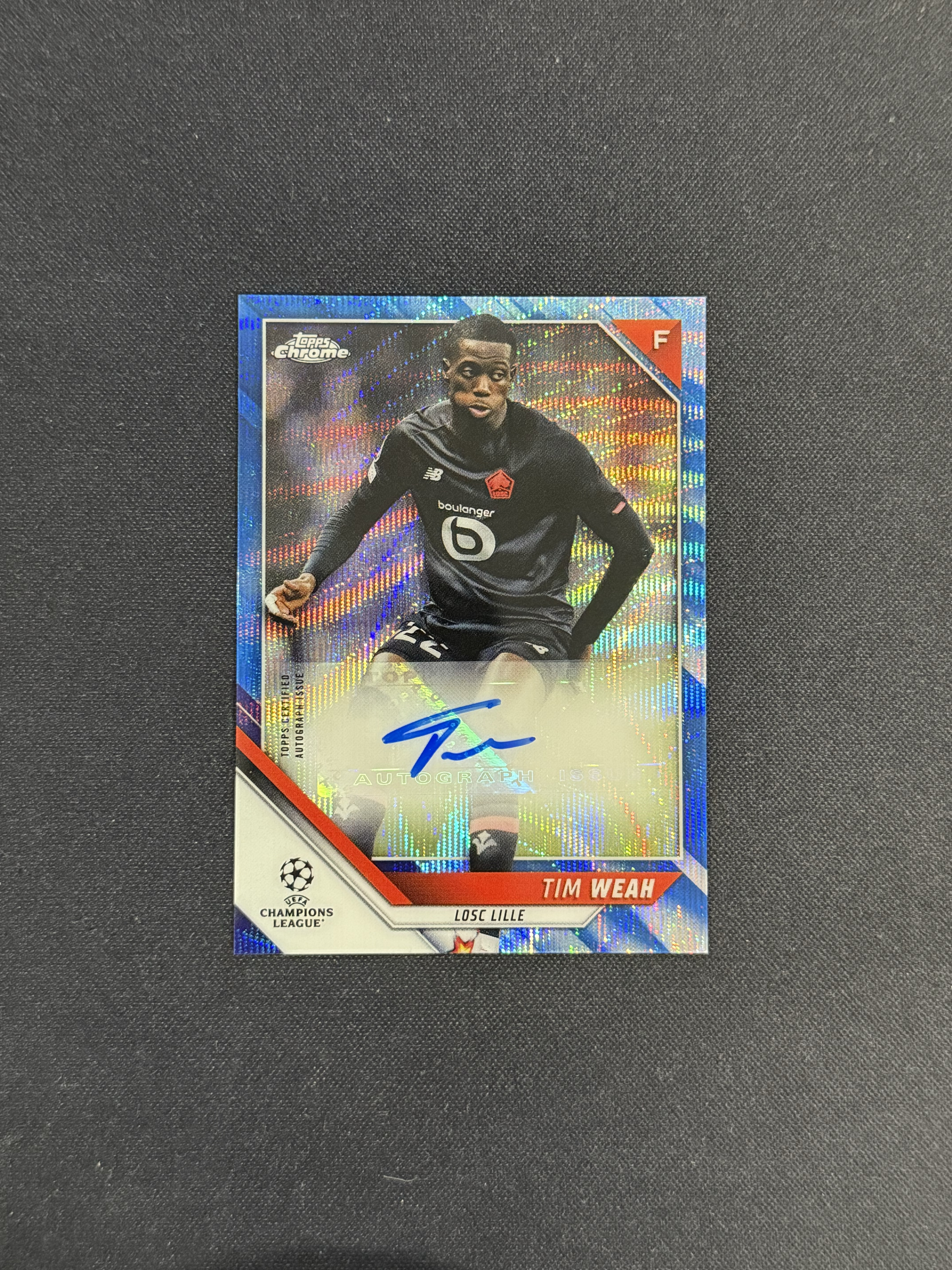 2022 Topps Chrome Timothy Weah 欧战TC 里尔 维阿 /75编 蓝波纹折 签字卡 美国前锋 尤文图斯 潜力巨大 卡品细节墨迹如图 #免费代拍欢迎咨询