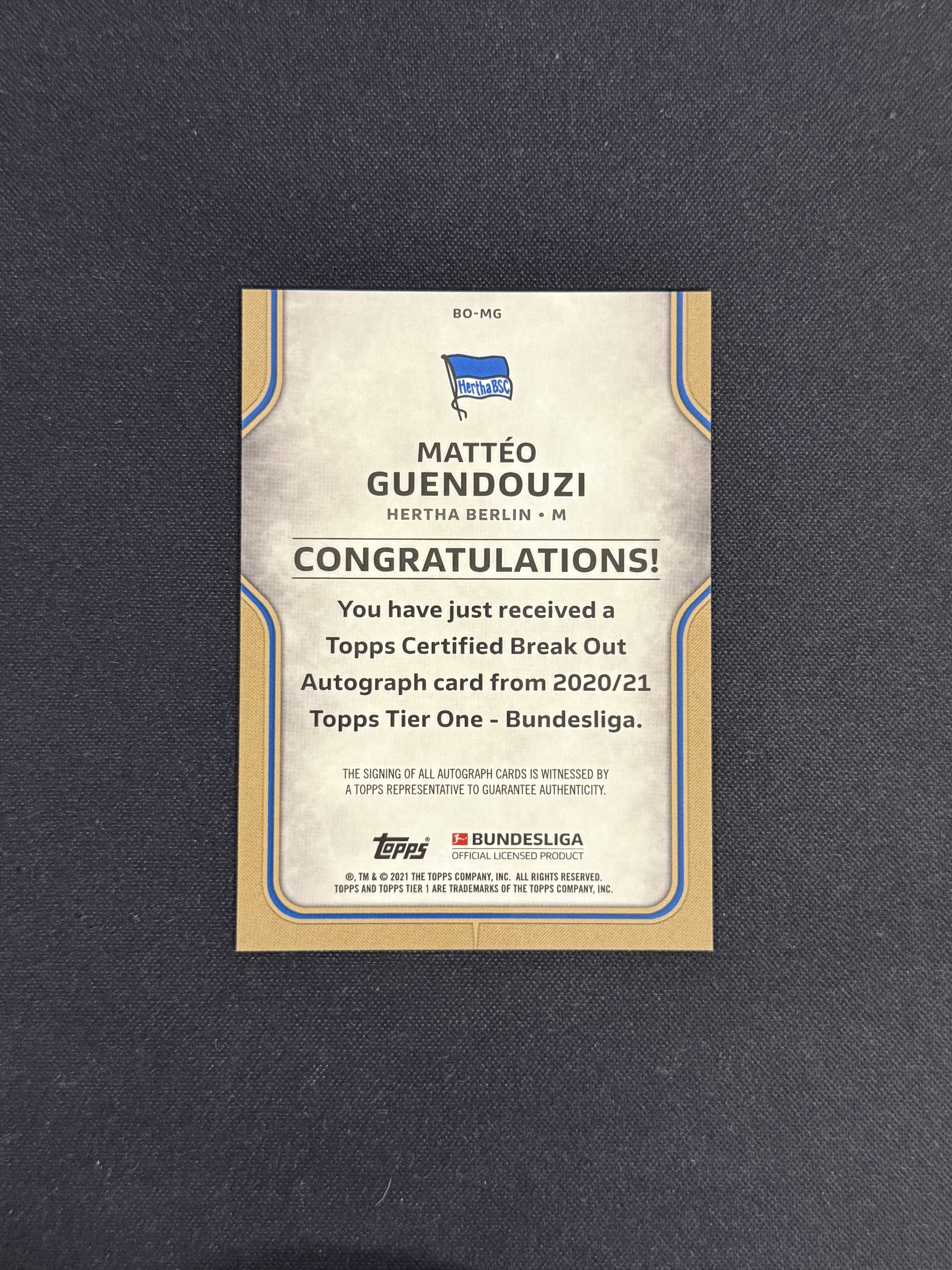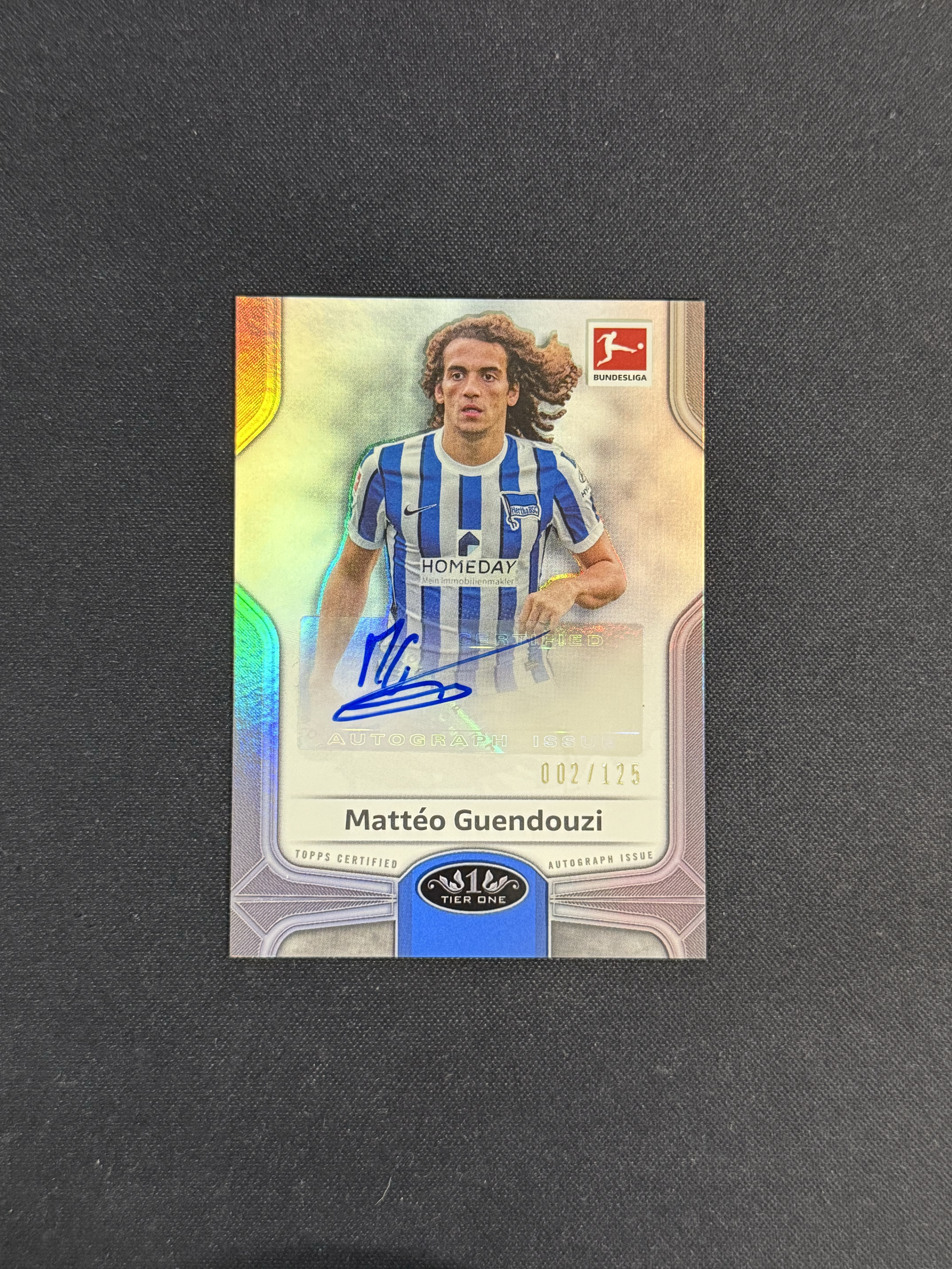 2021 Topps Tier1 Mattéo Guendouzi 德甲高端T1 柏林赫塔 贡多齐 /125编 签字卡 贡亲王 法国 阿森纳 拉齐奥 卡品细节墨迹如图 #免费代拍欢迎咨询