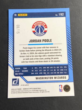 -都是线上支付,直接付款给平台。 - 浙江发货,顺丰快递。在快递途中卡片受损请自行与快递公司联系。 -卡品说明:卡品如图为一般通行品,有睱疵的会另外说明。请参拍前仔细查看图片,也可以咨询本店索要卡图,参拍视为接受卡品,拍下后不接受以卡品为理由的任何退货退款。国宝、IMM 、小真金、Noir等厚的卡普遍会有白边白角、卡面有轻印都属于通行品。Prizm,Optic等折射、镜面卡片有小划痕、小印记或非人为卡片制作印刷的问题属于正常通行品。要保证评级金标请直接购买评级卡。 - 拍后请于3日内付款,3日内不付款将直接申请投诉封号,拍后除节假日外,三天内发货 - 支持长期累计 由于拍卖量较大,本店一周发1-3次快递,本店支持累计三个月,可长期累计,累计请主动发提货码,本店留有累计数年的卡,但是卡片累计超过3个月丢失概不负责。 - 站内信和小助手回复积极 卡淘留言量大,看到以后都会一一回答,如果情况着急或者有意代卖可以联系VX JIUDIANSHIDIAN 即傻猫,客服会为您解答。站内信回复时间:周一至周六:11点——19点 ,周日店休不处理订单事宜。 【本店承接各类代卖,卡片拍卖效果良好,各类活动不断,手续费可低至0%,可提供预付80%(货到秒回),详细请联系VX:JIUDIANSHIDIAN 即傻猫】