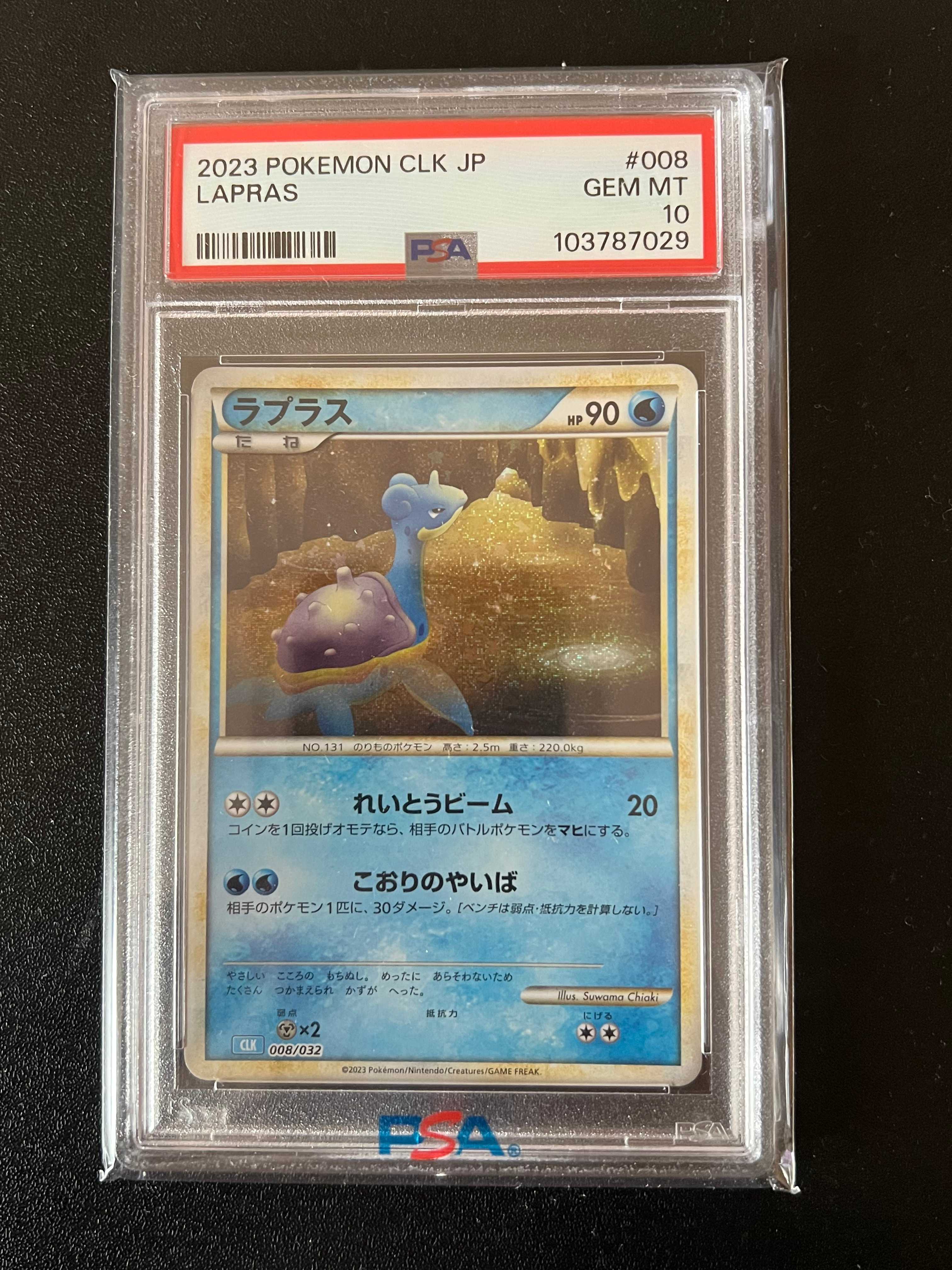 Pokemon TCG PTCG 宝可梦 日文 日版 宝可梦卡牌游戏经典礼盒 水箭龟卡组 CLK 拉普拉斯 008/032 无标记 折射 闪卡 全图闪 手绘 大手绘 Psa10分