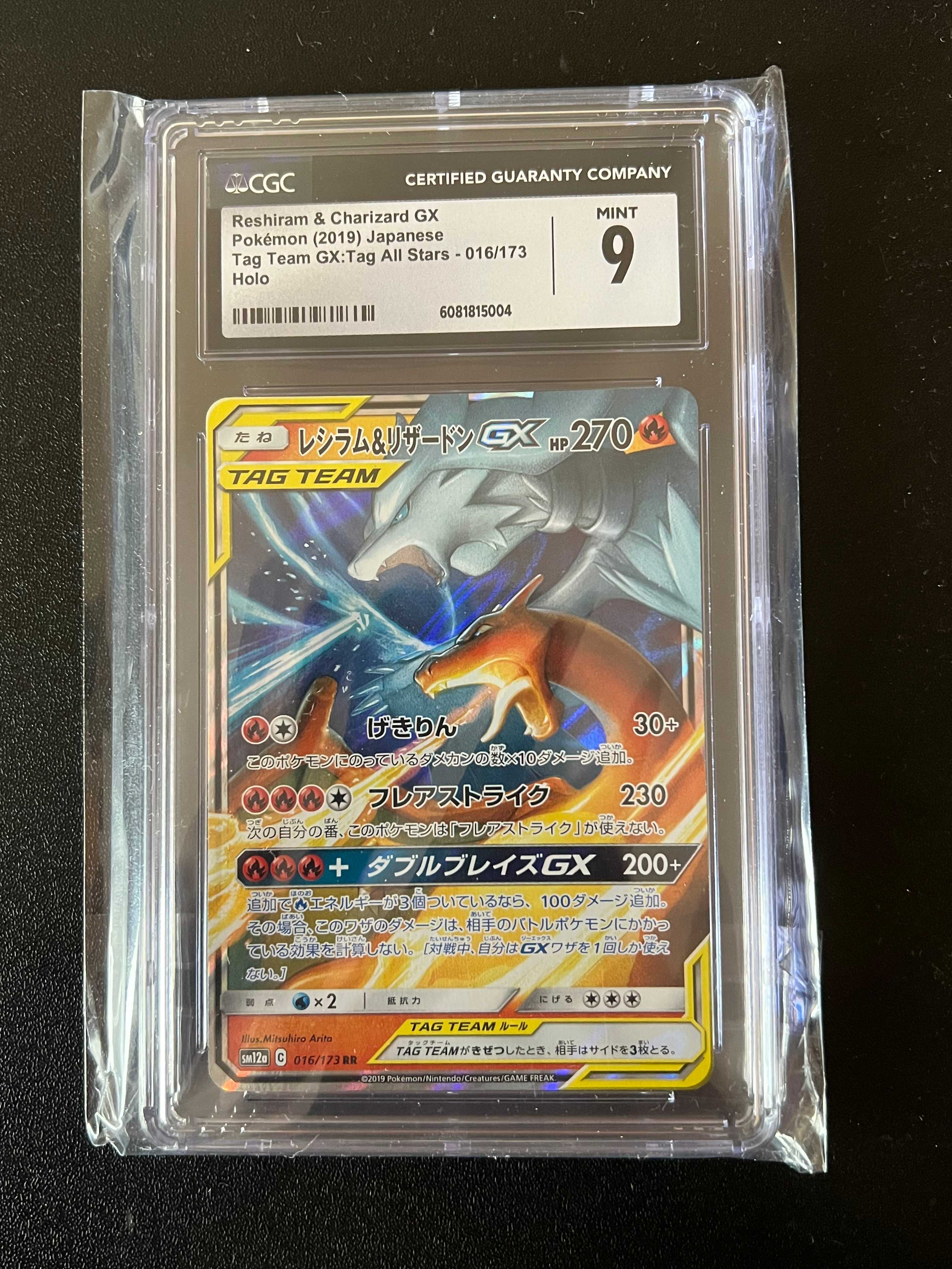 Pokemon TCG PTCG 宝可梦 日文 日版 SM12a TAG TEAM GX 联手明星大集合 莱希拉姆&喷火龙GX 016/173 RR 闪卡 全图闪 手绘 大手绘 CGC9分