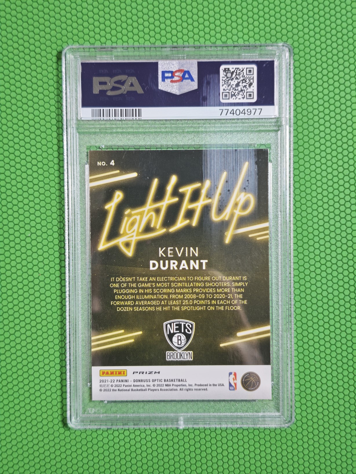 2021-22 Panini Donruss Optic Kevin Durant 篮网 火箭 凯文杜兰特 Light it Up特卡 银折 跳投选图 Psa7 壳子右侧划痕见图 介意勿拍